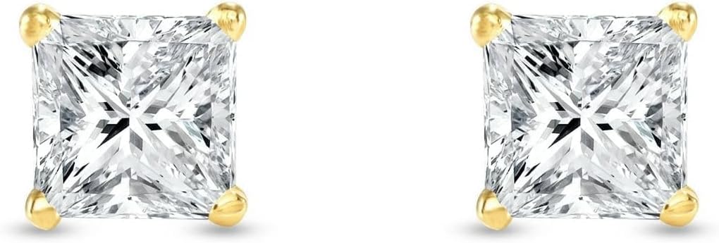 These 1 Carat Princess Cut Diamond Stud Earrings, exquisitely crafted in genuine 14K yellow gold. Showcasing a sleek and modern square design, these earrings feature a striking princess cut diamond that delivers a brilliant and fiery sparkle from every angle. Perfect for women who appreciate bold elegance, these earrings bring together timeless style and contemporary fashion. Designed with a durable screw-back closure, these earrings provide both comfort and security, making them ideal for all-day wear. The sturdy construction ensures that the earrings stay in place, giving you peace of mind whether you're at the office, enjoying a night out, or attending a formal event. These earrings are a flawless match for a variety of personal styles—minimalist, elegant, or glamorous—and complement both Western and traditional outfits. Their geometric beauty and radiant finish make them a staple accessory for women of all ages, from college students to professionals and even brides-to-be. Each diamond is hand-selected for brilliance and clarity, then set in a classic 4-prong basket that highlights the clean angles of the princess cut. The natural sparkle of the diamond contrasts beautifully with the warm glow of solid yellow gold, making these earrings a standout piece in any jewelry collection. Whether you’re purchasing a meaningful gift for a loved one or treating yourself, these earrings are an ideal choice for birthdays, anniversaries, festive occasions, or milestone moments. Delivered in a premium jewelry box, they’re ready to present and impress. Made with ethically sourced, conflict-free natural diamonds, this piece reflects a commitment to sustainability and quality. Every pair is handcrafted by skilled artisans who ensure attention to detail and impeccable finish. These princess cut earrings blend everyday sophistication with lasting beauty—perfect for someone who values luxury in the details. Add sparkle to your style with earrings that are as strong as they are stunning.