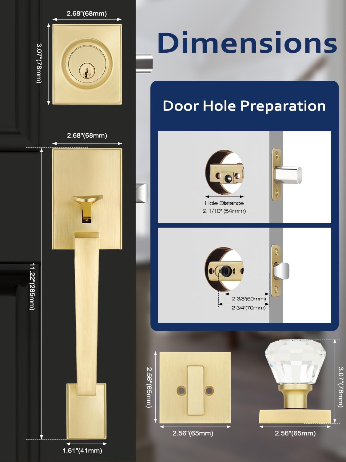 | Included Components | Front Door Handle, Deadbolt, Lock and Key, Template, Installation Hardware, Instruction Manual |