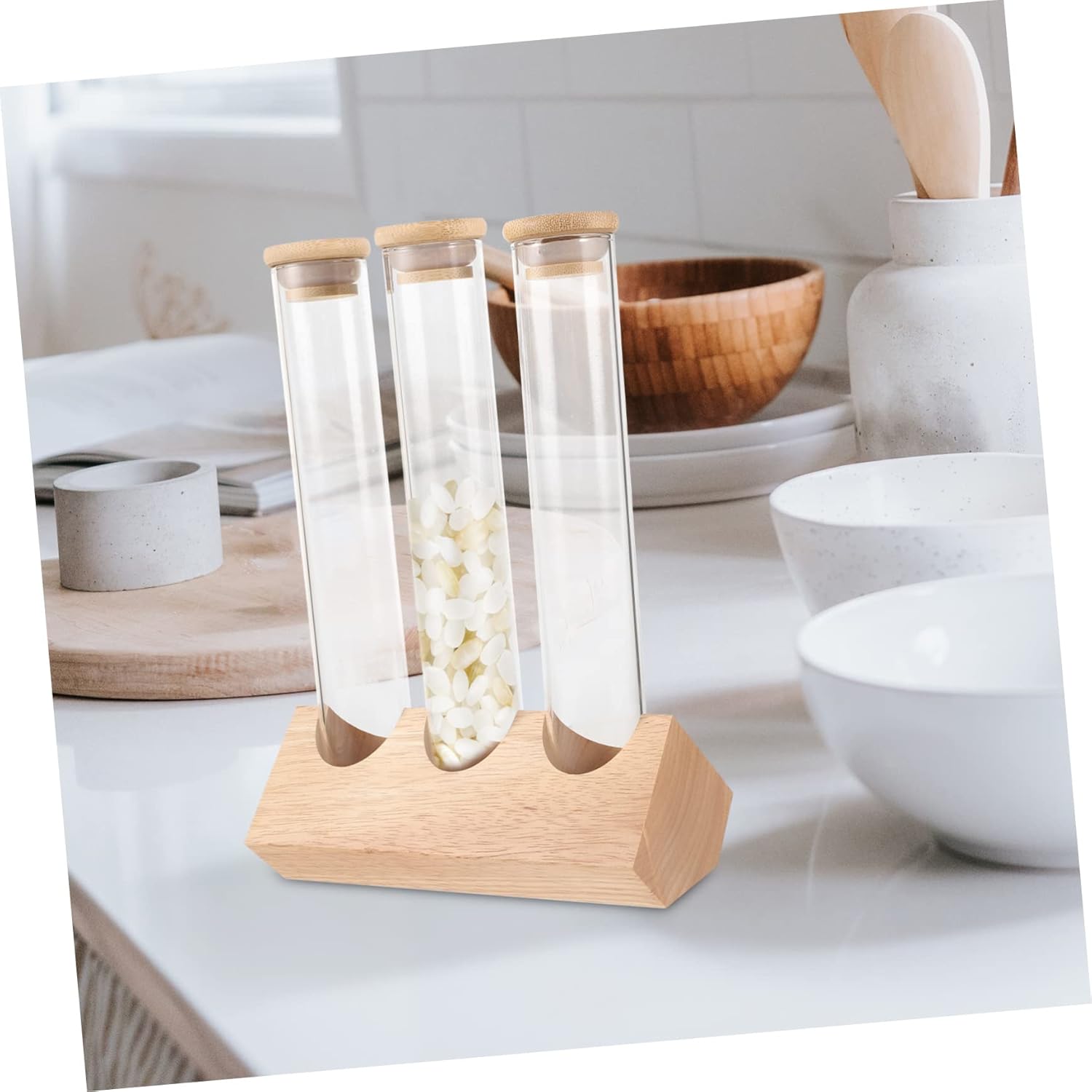 Package List 1 3 x bottles Characteristics -Size:24.00X16.00X8.50cm/9.43X6.29X3.34in coffee beans storage rack -Color:Transparent coffee storage rack -Material:Wood,glass coffee beans rack - Suitable for all kinds of occasions, teahouses, bars, cafes, restaurants, kitchens, etc coffee beans storage tubes. - Multi-functional storage jar. This thick glass storage tube is perfect for storing and preserving a variety of ingredients test tubes with lids. - Displays your favorite chemistry-inspiring shot glasses and is also great for keeping your favorite ground spices and within reach while you cook coffee beans container. - Made from , perfect for tea, bean and nuts packaging. to use coffee bean storage. - Perfect for preserves, jams, chutneys, rice, sugar, flour, tea, coffee, spices, biscuits, etc coffee bean holder.Goods Descriptioncoffee bean display rack This product is made of , to use, it is a perfect coffee flower tea display rack, can say goodbye to messy from now on.coffee bean storage container The is made with strict workmanship and transparent overall appearance