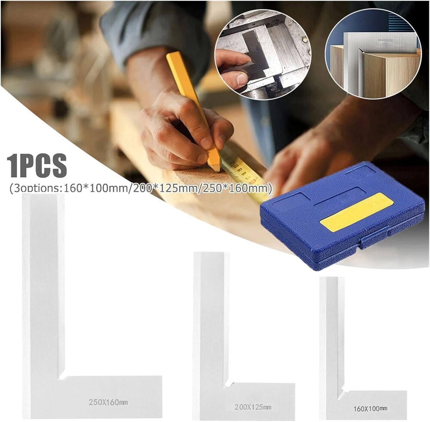 The tool kit is made of high-quality materials and has the functions of strength, durability and anti-corrosion protection.Details:*100% brand new and high quality.*Tolerance :0.02-0.05 mm*Material: Stainless steel*Use For: 90° right angle measuring, designed for precision layout and measurement work.*Optional Size: 160*100mm,200*125mm,250*160mm Package Contents: 1*Edge Square Ruler(with Plastic box )
