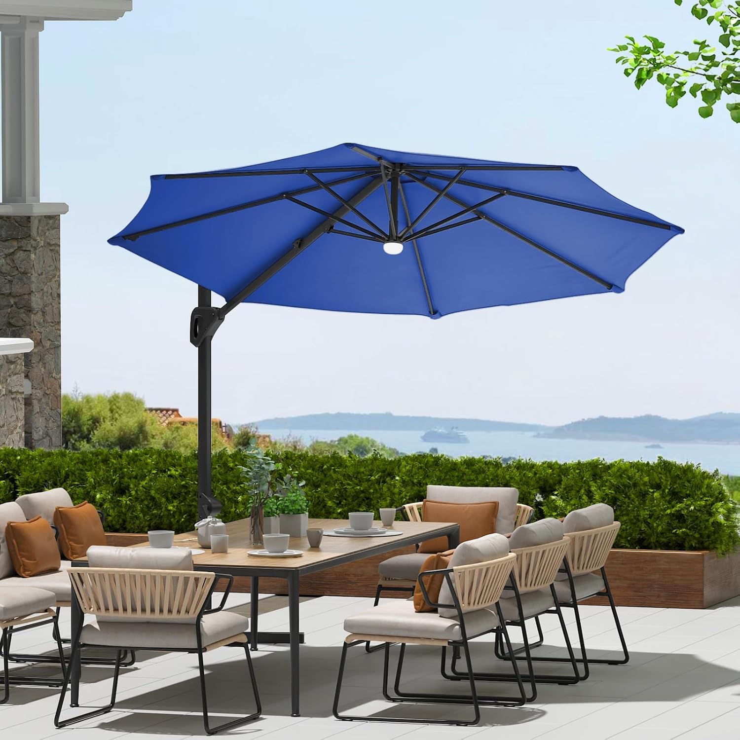 Elevate your outdoor space with this 10ft Cantilever Patio Umbrella—your perfect shade solution for the backyard, garden, pool deck, or porch! Boasting 360° rotation and easy tilt adjustment, it lets you effortlessly angle shade to block the sun all day long. Crafted with a durable aluminum frame and included cross base, it offers exceptional stability while being simple to install. This hanging market-style umbrella combines functionality with sleek design, keeping you cool and comfortable during outdoor gatherings, meals, or relaxation. Sturdy, versatile, and user-friendly, it’s a must-have upgrade for any outdoor living area.