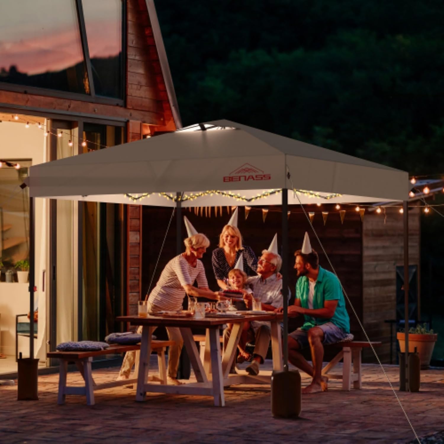Product Information Product Type: General Merchandise Product Name: 10x10 Pop-up Canopy with Side Walls Main Color: White Main Material: Steel Product Dimensions Assembled Length (inches): 118.11 Assembled Width (inches): 118.11 Assembled Height (inches): 110.24 Weight (pounds): 35.20 Our tents are designed with straight legs to maximize space utilization. The overall dimensions are 10'L x 10'L x 9.2'H (8.53'-8.86'-9.2'). Enough to accommodate 8-10 people, enough space for tables, chairs and other items, perfect for parties, camping, events and booths