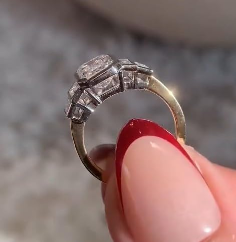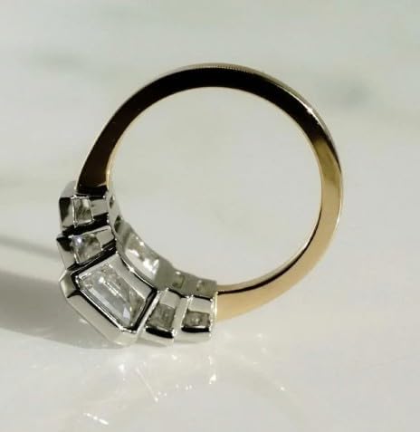 Elevate your style with this exquisite two-tone bezel set emerald & baguette cut CZ ring, inspired by classic Art-Deco luxury. The centerpiece features a striking emerald-cut cubic zirconia, known for its clean facets and elegant radiance. Flanked by shimmering baguette-cut CZ stones, the design adds depth, symmetry, and a touch of vintage sophistication. The ring top is crafted in polished silver, while the band is plated with 18K yellow gold, creating a premium two-tone contrast that enhances its brilliance. Made from solid 925 sterling silver, the ring is hypoallergenic, nickel-free, and perfect for both everyday wear and special events. Whether you're choosing an engagement ring, a promise ring, or a statement jewelry piece, this emerald & baguette CZ ring makes a beautiful and meaningful gift for someone special — or yourself.
