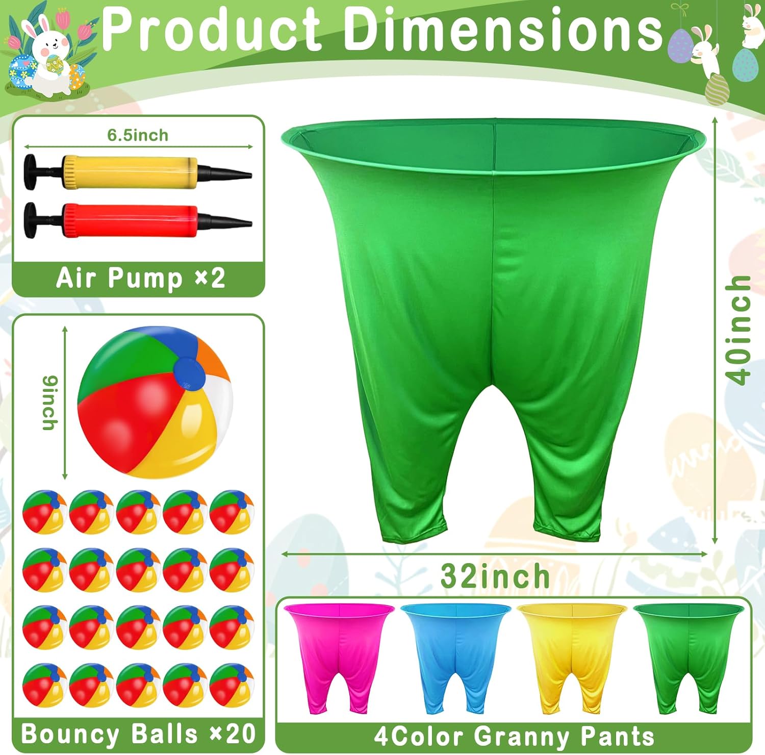| Included Components | 2 Air Pump, 20 Colorful Bouncy Balls, 4 Color Oversized Pants, 4 bonus repair patches |