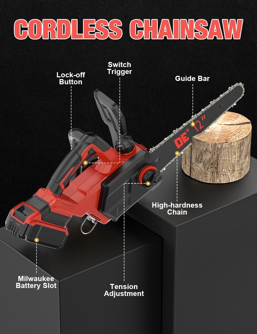 | Included Components | 1 x 12 Inches Cordless Power Chainsaw, 1 x Chain, 1 x Guide Bar, 1 x Guide Bar Cover, 1 x User Manual |