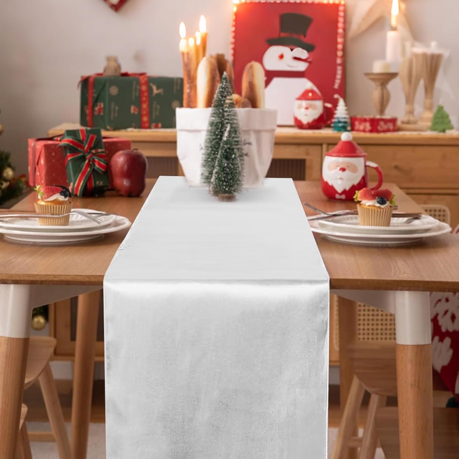 Product Name: Christmas Table RunnersQuantity: 12 pieces (4 colors, 3 pieces per color)Colors: Red, Green, White, Golden