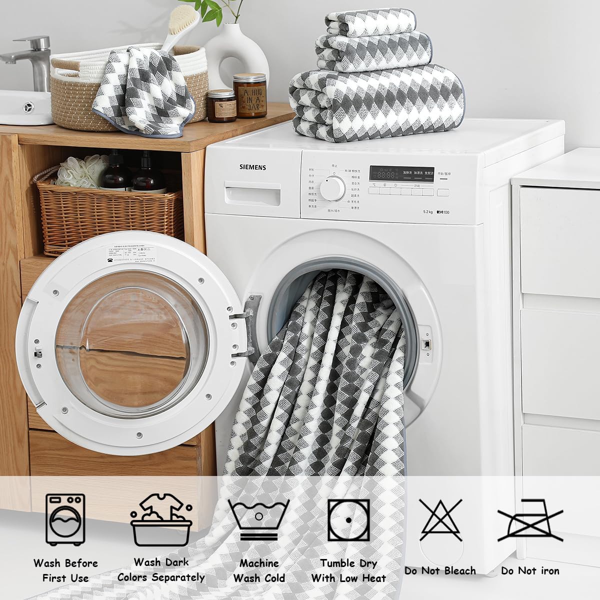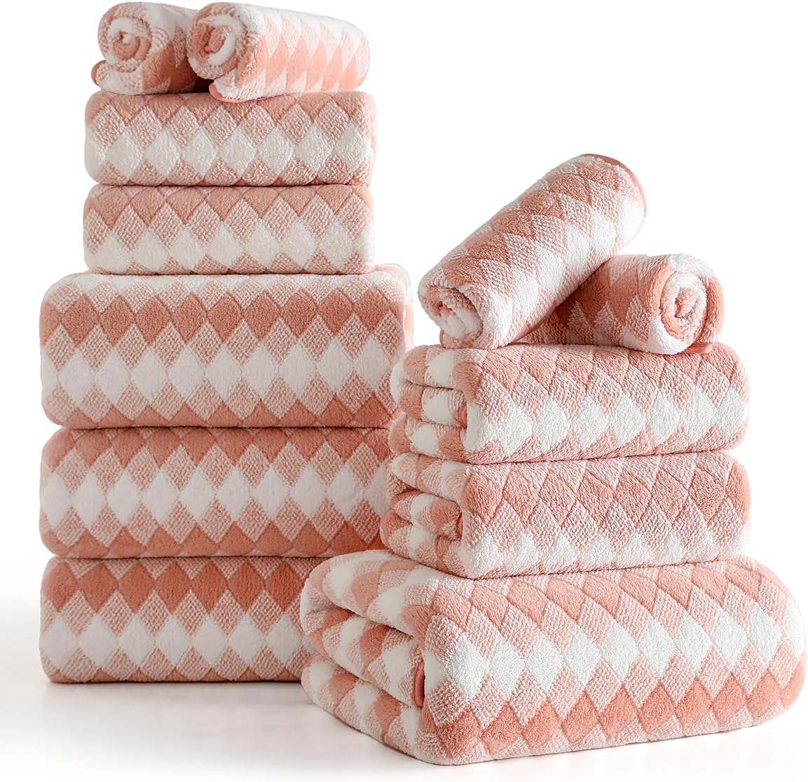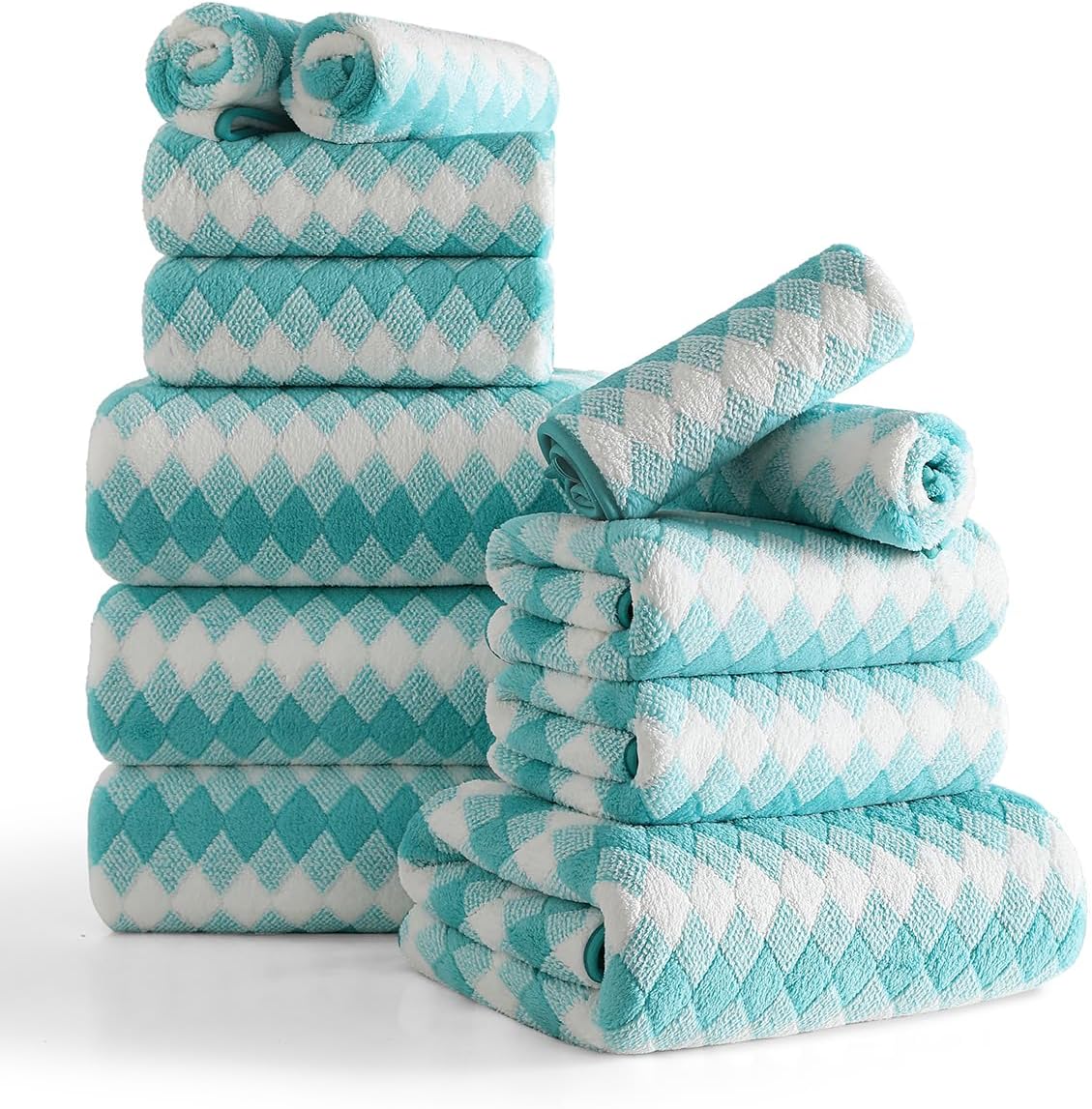12 Piece Diamond Family Towel Set Package Includes:4 pcs 27“x60” bath towels4 pcs 15“x31” hand towels4 pcs 13“x13” washclothsA family towel set offers versatile useAbsorbent,quick-drying bath sheets suitable for bathrooms,beach chairs,sofas,spas,pools, gyms, and hotels