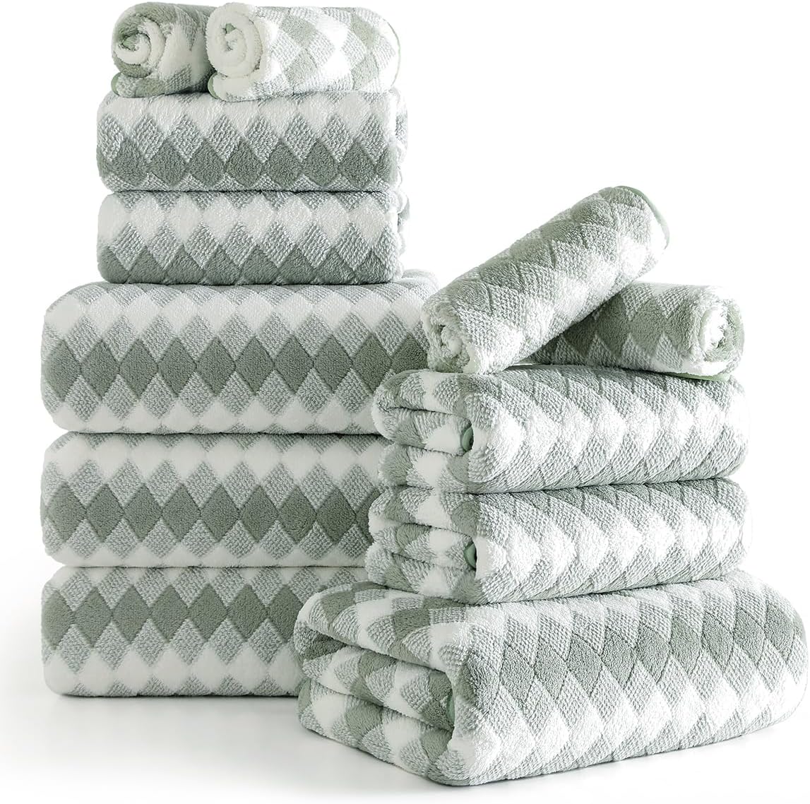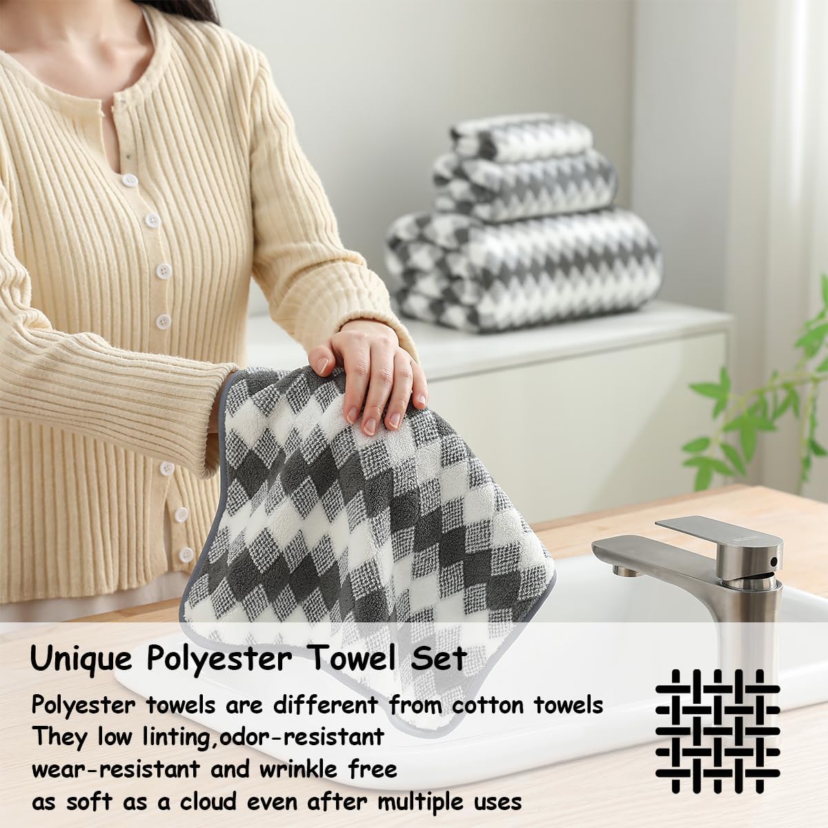 | Set Name | 12 Pcs Gray White Diamond Towel Set |