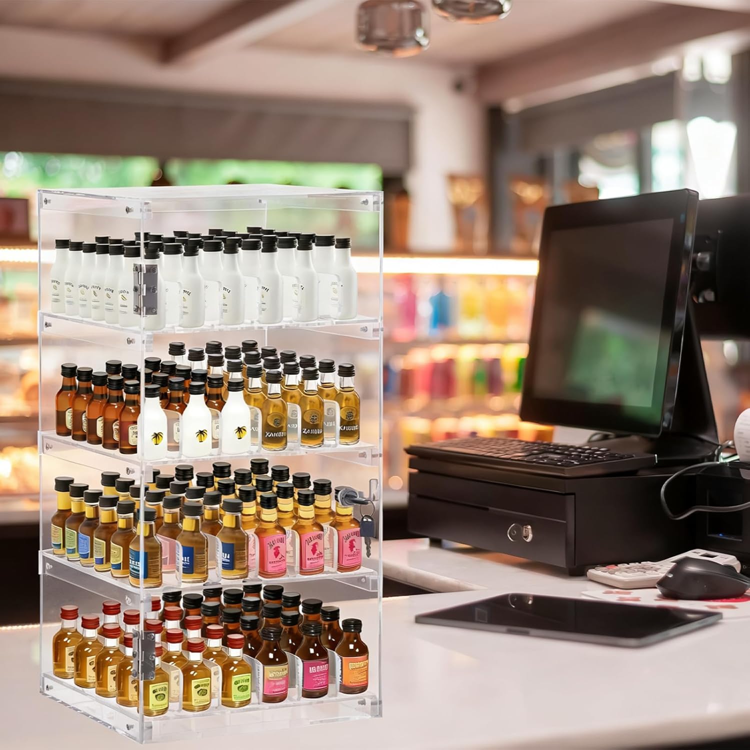 Features: Functional Size with Flexible Arrangement: This liquor display case stands out as a functional mini liquor bottle display with its 12x12x24-inch frame. The 20 adjustable dividers (5 per layer) allow flexible arrangement, while price tag holders on each layer help present brand and price details clearly. Made of acrylic, it offers good durability and transparency, making it suitable for commercial liquor shot display in liquor stores, convenience stores, and gas stations. Practical Design for Diverse Retail Spaces: As a practical liquor bottle display shelf, this acrylic case is designed to meet the needs of various retail spaces. It can hold up to 192 mini liquor bottles and is also suitable for displaying small items like chargers. The lockable ensures security, while the adjustable dividers and price tag holders add to its convenience. Whether as a liquor rack countertop or in larger retail setups, it effectively showcases products, making it a great choice for a liquor display in diverse commercial environments. Specifications: Material: acrylic Color: clear Size: approx. 12x12x24 inches Package includes: 1 x Acrylic mini liquor display case Notes: Manual measurement, please allow slight errors on size. The color may exist a slight difference due to different screen displays. Please tear off the protective film before use