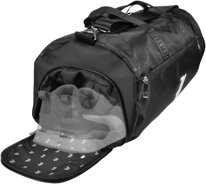 Comfortable and spacious black printed bag with white embroidery 100% PL 133420 Juve
