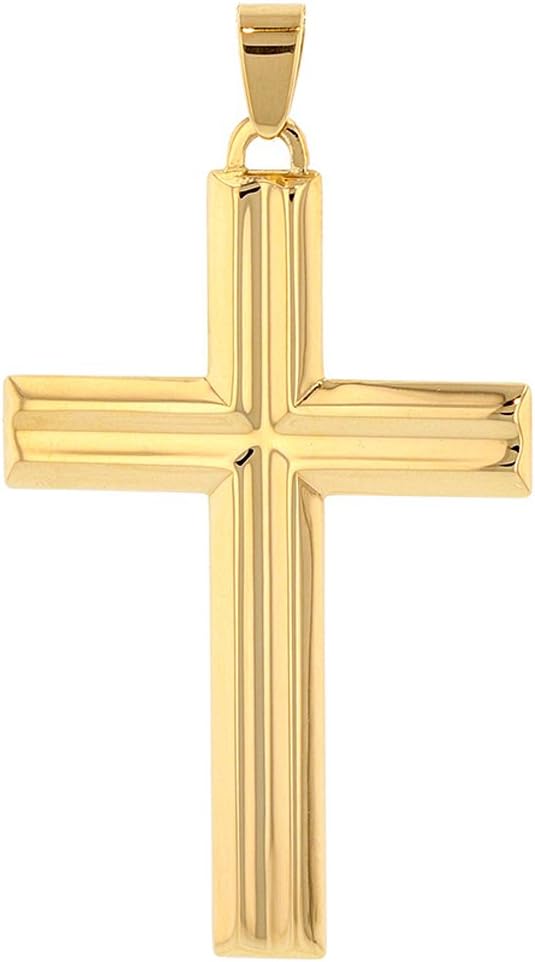 | Style | 14k Yellow Gold Crucifix Large Religious Plain Cross Pendant with Cuban Chain Necklace |