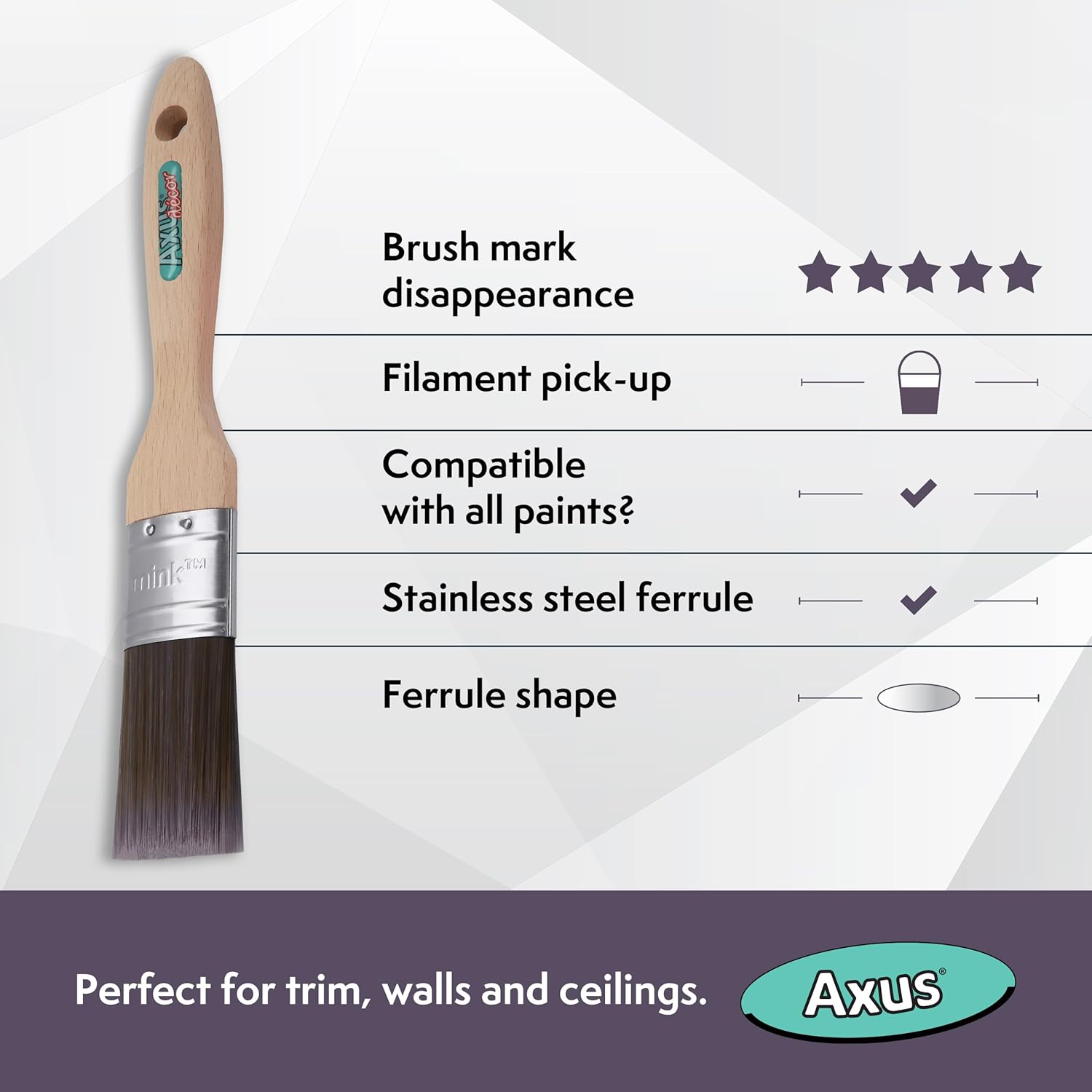 "A slightly oval shaped brush that offers exceptional performance with all types of paints. The ultra-fine Silk Touch filaments eliminate more brush marks than traditional brushes. The Stainless steel ferrule makes it compatible with your brush storage box. Ergonomic FSC beech wood handle from responsible managed forests. "