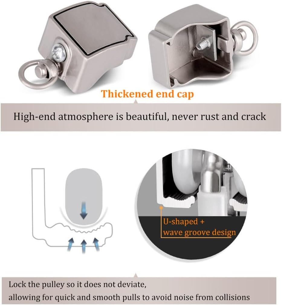 Transform your living space with our premium Double Curtain Track, crafted to elevate both the style and functionality of your home decor. Key Features: - Whisper-Quiet Operation: Our double curtain rods are equipped with advanced nami wheels, ensuring a smooth and silent glide. Enjoy a tranquil atmosphere while maintaining your privacy. - Durable Construction: Made from high-quality aluminum alloy, our curtain track is designed to resist fading and corrosion. With a remarkable load-bearing capacity, it effortlessly supports heavy curtains. - Effortless Installation: This complete double curtain track kit includes everything you need for a fast and simple setup, making it adaptable to any space in your home. - Versatile Mounting Options: Choose between ceiling or wall mounting to perfectly match your room's aesthetic and layout. Perfect for Every Room: Whether you want to create a cozy bedroom, a stylish living room, or a functional office, our double curtain track is the ideal solution. Use it as a room divider in your garage or to enhance sliding doors, attics, balconies, or bathrooms. Specifications: - Name: Double Curtain Track - Material: Aluminum Alloy - Type: Straight Track - End Cap: Aluminum Alloy - Installation: Ceiling/Wall Mounting Package Includes: - Curtain Track: Purchase on Demand - Pulley: 16PCS/m - End Cap: 4PCS/Set - Mounting Bracket: 2PCS/m Elevate your home decor with our Double Curtain Track, creating a stylish, functional, and serene environment that enhances your everyday living experience!