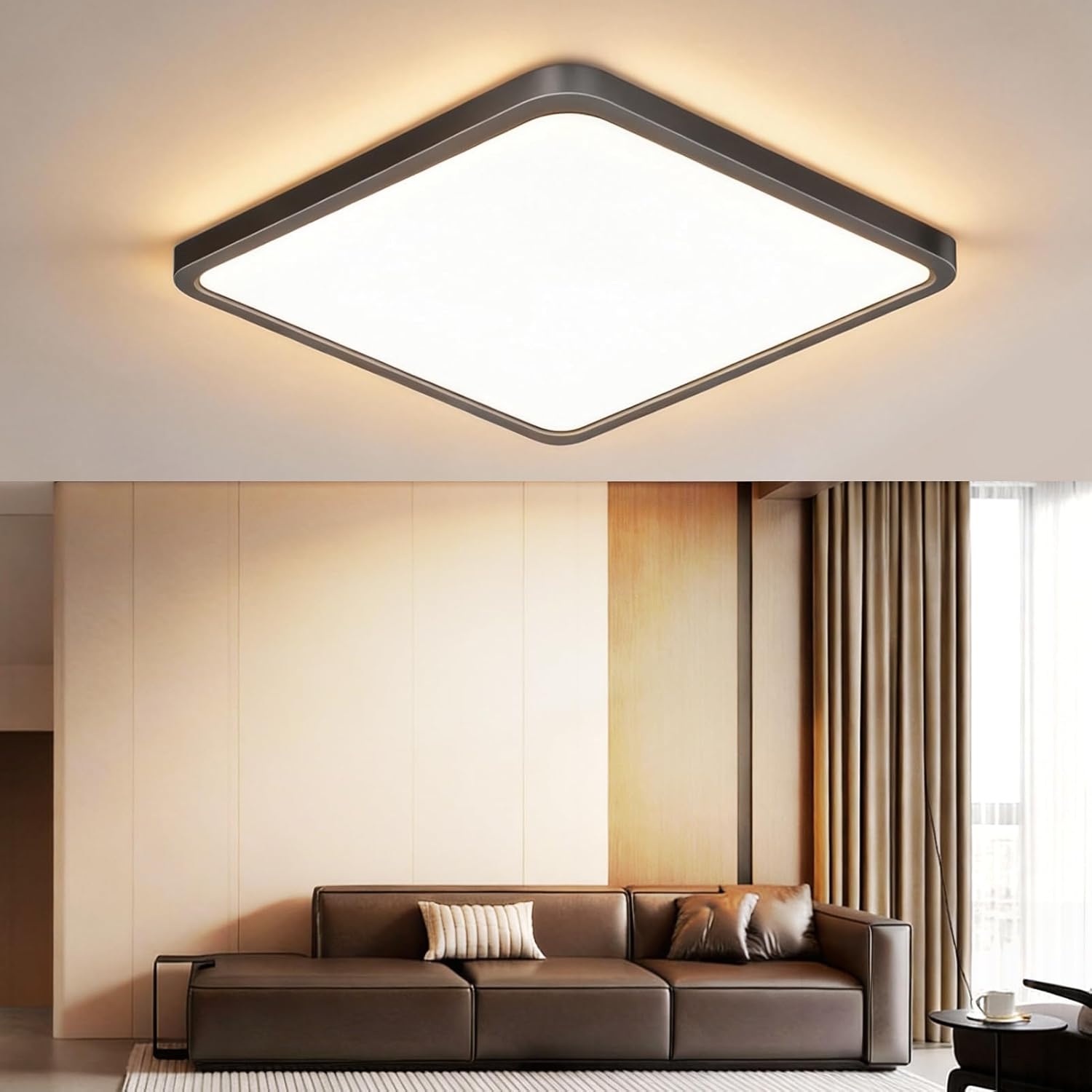 Features: ❉ Energy Saving and longer lifetime. ❉ Bright and powerful LED provides 3800lm. ❉ Features matt white color and slim square design, perfect for kitchen,bathroom, bedroom,hotels, commercial areas,offices,stairs,hotels,and your house. Specifications: Name: Square LED Flush Mount Ceiling Light Fixture Input: 100-240V AC Wattage: 32W (320W Equivalent White Ceiling Lamp) Color Temperature: 2800K Warm WhiteMaterial: PlasticCRI: 80+ Beam Angle: 120° Light Source: LED Size: 15.7*15.7*0.94inch Average Life (hours): 30000h Mounting: Flush Mount/Surface Mount/Ceiling Mount Incandescent Equivalent: 320W Light Output: 3800 LM Package Contents: 1 * Square LED flush mount ceiling light 1 * Installtion manual 4 * Mounting screws Installation Tips: 1.Fix the base with screws. 2.Connect the L/N cable. 3.Rotate the lamp clockwise and install onto base plate. 4.Then finish installation,so easy.