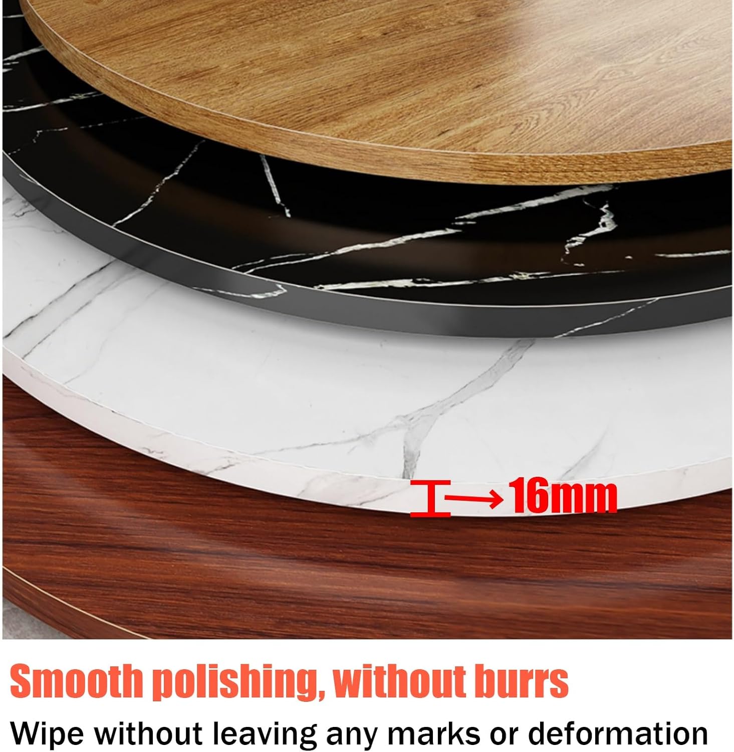 Details-Name: Wooden Round Dining Table-Material: Wood-Color: Pine color , White stone pattern , White , Black , Teak color , Golden oak color-Thickness: 1.6 cm-Diameter: 43cm/16inch , 48cm/18inch , 53cm/20inch , 58cm/22inch , 63cm/24inch , 68cm/26inch , 73cm/28inch , 78cm/30inch , 83cm/32inch , 88cm/34inch , 93cm/36inch , 98cm/38inch-Installation: No assembly required, can be placed directly on the table.- Place of use: Suitable for restaurants, family gatherings, birthday parties, hotels, banquets, etc.- Package contents: round table x 1 + rotating base (installed)Recommended size.- When choosing the size, table diameter - about 50 cm = turntable diameter (please note that about 25 cm of space is required around the tabletop to place items)For example: a round table with a diameter of 100~110 cm, a turntable with a diameter of 48/53/58cm is recommendedThe wooden rotating board has a 360-degree rotation function, flexible rotation, stable and uniform speed, and a guide rail is installed for your direct use. It is a must-have for every family and can enhance your entire cooking experienceThe turntable is measured manually, and the size may have an error of 1-2mm, please refer to the actual product.Due to shooting angles, light, viewing angles, etc., slight errors and color differences are inevitable. Thank you for your understanding.