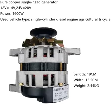 Introducing our high-performance Pure Copper Generator, designed specifically for agricultural applications. Available in both double-head and single-head options, our generators operate at versatile voltages of 12V-14V and 24V-28V, making them suitable for a wide range of diesel engine models. The double-head generator, with a compact length of 20.3CM and width of 13.5CM, delivers a robust power output of 1600W, perfect for single-cylinder diesel engine agricultural tractors. Its pure copper construction ensures excellent conductivity and efficiency, translating to reliable performance in demanding environments. For those who require a single-head solution, our generator boasts similar specifications, measuring 19CM in length and 13.5CM in width, while weighing only 2.44KG. This lightweight design makes it easy to transport and install on single-cylinder diesel engine agricultural tricycles, offering a practical power solution for various on-the-go needs. Both models are engineered to withstand the rigors of agricultural work, providing dependable power to keep your operations running smoothly. Whether you're powering machinery or charging batteries, our Pure Copper Generators are built to enhance productivity and efficiency. Invest in a generator that combines durability with superior performance—experience the value of reliable power for your agricultural needs today.