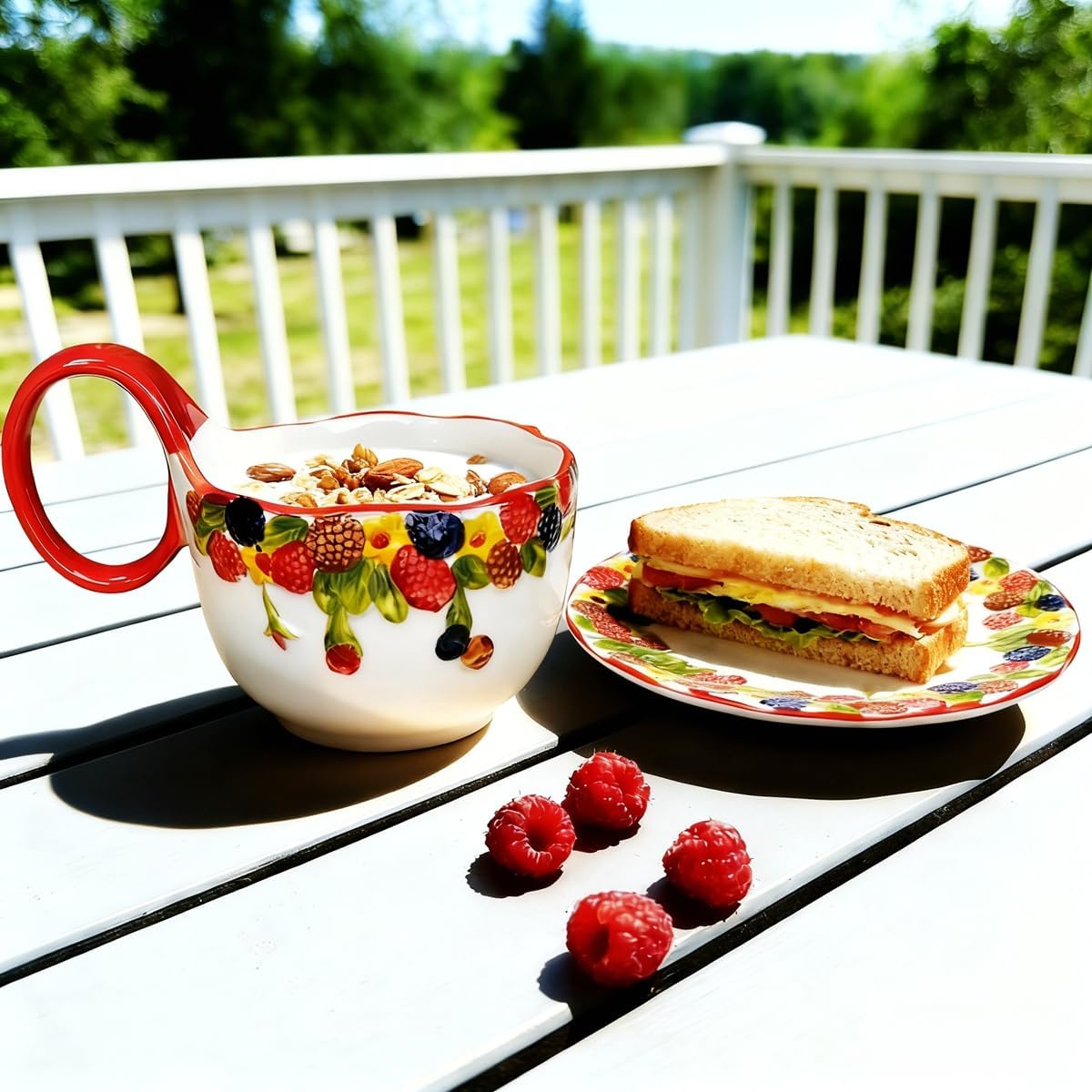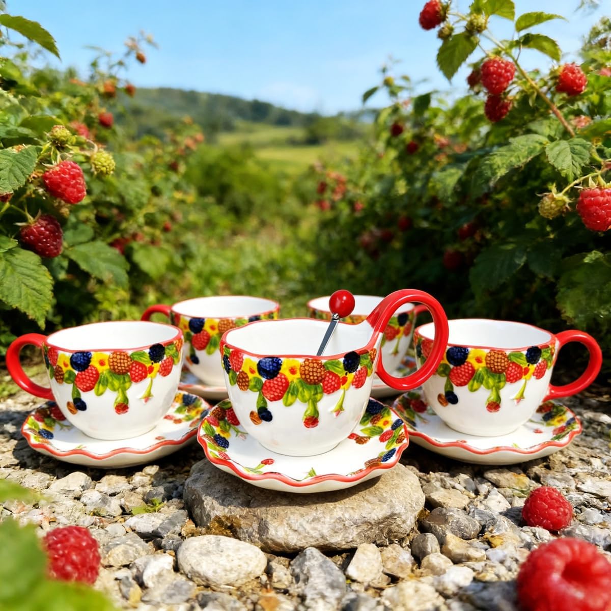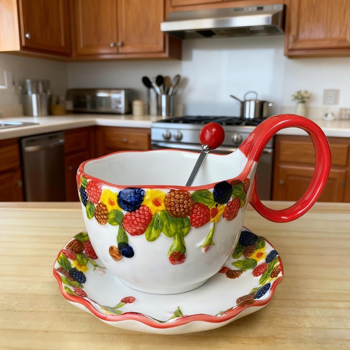 | Product Style | Raspberry - Handmade Relief Loop Handle Soup Bowl with Spoon |