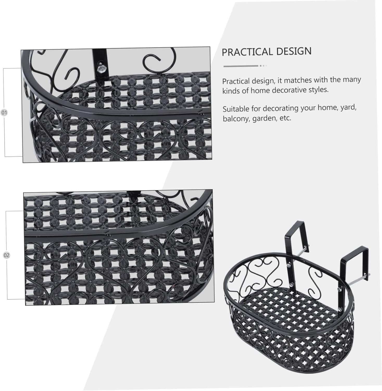 Package Include 1 x Flowerpot holder (with 2 hooks) Characteristics - Color: Black Flowerpot Rack - Material: Iron Flowerpot Stand - Size: 30.00X20.00X12.00cm/11.79X7.86X4.72inch Hanging Flowerpot Holder. - You can put a small bonsai in it to decorate your yard or garden Wall-mounted Bonsai Holder. - Its is sturdy enough, not easy to deform and break, Flower Stand. - Suitable for displaying your beautiful orchid and some other plants and flowers Bonsai Storage Rack. - The hanging flower pot rack can be used to decorate balcony, courtyard and more Ironwork Plant Shelf. - Made from iron materials, safe and Railing Plant Stand.Goods InformationDecorative Bonsai Holder It is available for hanging on the wall, save the space.Ironwork Plant Shelf This flower pot shelf is pretty suitable for garden and balcony to garnish your house as art decors.Railing Flower Holder Premium iron material, surface is very smooth, sturdy for supporting heavy flower pot, and large sizes can put many potted plants