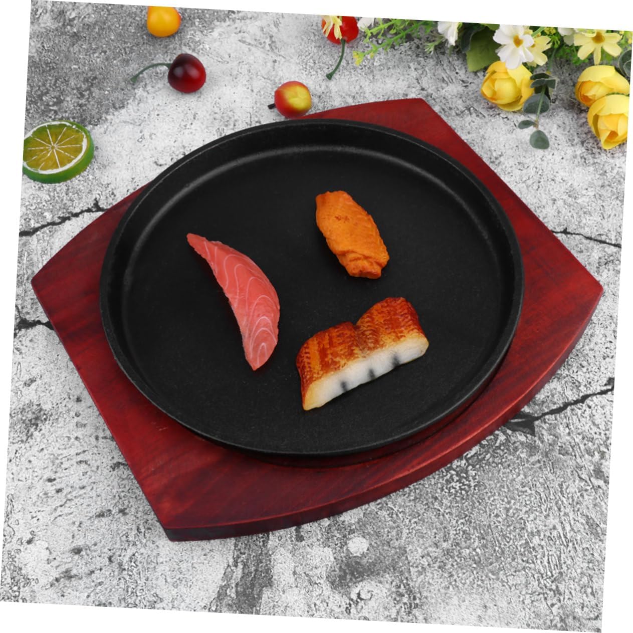 Package List 1 x Teppanyaki Pan Features - Material: Iron and wood roasting tray. - Size: About 24x24x5cm/9.44x9.44x1.96 inch. - Color: Brown. - Can be used for frying and roasting BBQ dish. - Great for Hispanic and Japanese cooking or anything needed grilled in the plate barbecue dish. - Easy to up iron plate, convenient to transfer beef steak plate. - Made from material, to use metal baking dish. - Easy to clean and maintenance, stain-resistant.Goods Descriptionmetal baking dish Are you looking for a professional, yet roasting tray? Are you in search of a sturdy, trustworthy tool that can do multiple jobs at once? , ! Our professional roasting tray must meet you needs.beef steak plate It is one of the for you