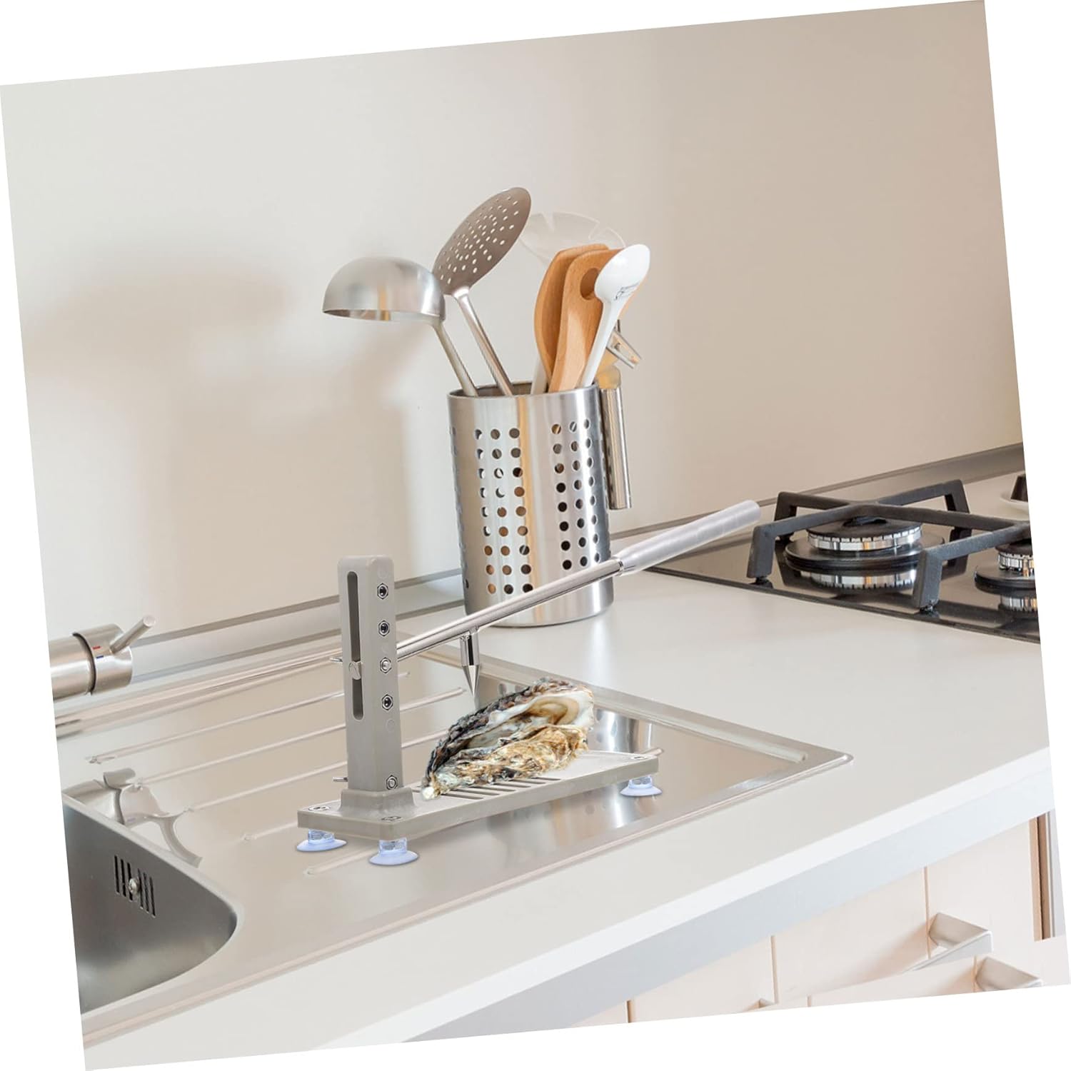 Package List 1 x Oyster Opener Features - Size: 48.00X20.00X10.00cm/18.86X7.86X3.93in. Oyster Pry Tool - Material: Iron, PP Iron Oyster Cutter. - Color: Light Grey. Oyster Shucker - It can be used to open oysters, clams, shellfish and seafood, and it is easy to use Kitchen Supply. - It is small in size, light in weight, does not take up of space, and is easy to carry Adjustable Oyster Opener. - The four gears can meet different sizes of shells and meet different needs. It is a practical tool Shellfish Pry Tool. - The non-slip handle provides maximum comfort, grip, easy to use, and not easy to hurt your hands Shellfish Shucker. - Can be given as a present to friends who like to eat seafood, they will like it Oyster Opener with Gear Adjustment.Goods InformationAdjustable That's because our product can meet your needs.Oyster Cutter craftsmanship its practicability and durability for long-term use.Kitchen Supply If you are looking for a professional and oyster corkscrew, then your research is here.Iron Oyster Cutter It is an adjustable shellfish opening tool