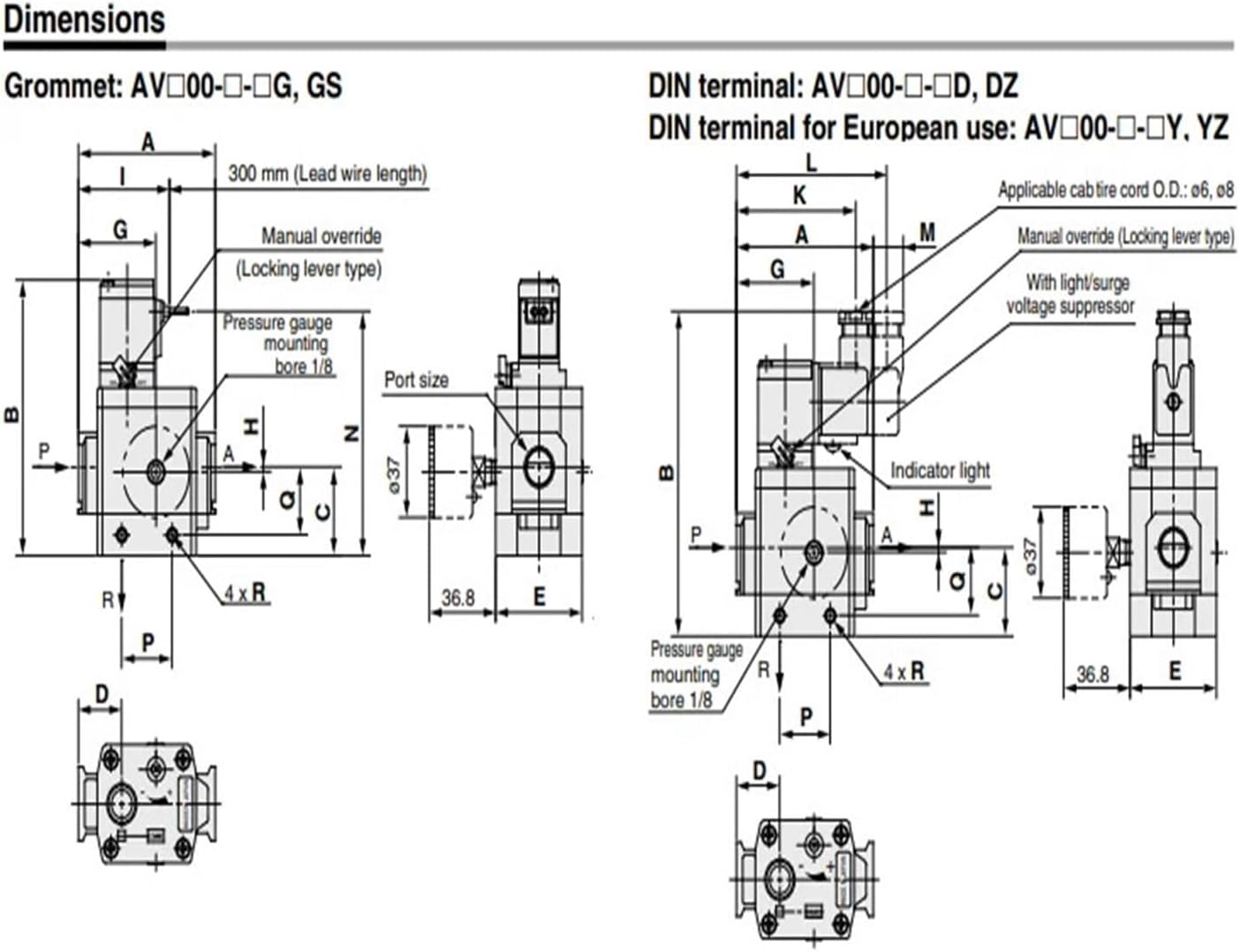 ValvesType : ValvesModel Number : Soft Start-up Valve AV2000,AV2000-02-5D/5DB/5DC/5DZ/5DZB/5GB/5GS/5YZ.Proof pressure : 1.5 MPaOperating pressure range : 0.2 to 1 MPaPressure gauge port size : 1/8Current consumption DC : 1.8 WPilot valve manual override : Non-locking push type
