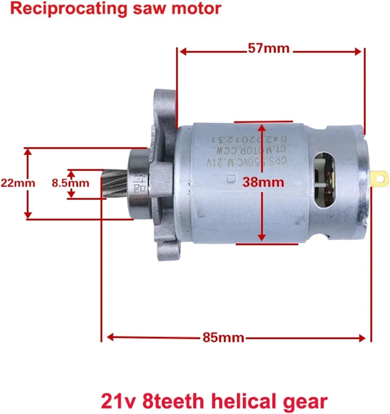 ReducersHign-concerned Chemical : is_customized : YesModel Number : Reciprocating Saw Motor 550DIY Supplies : ELECTRICALSpecification : 21V 8 teethGear : Helical / conical teeth gear