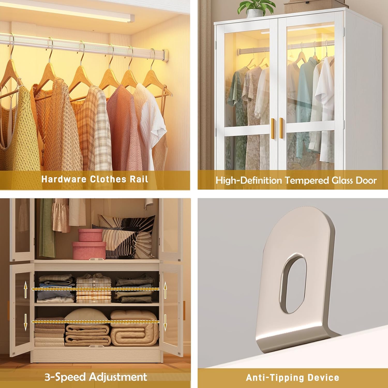 | Storage Options | Hanging, Shelves, Drawers |