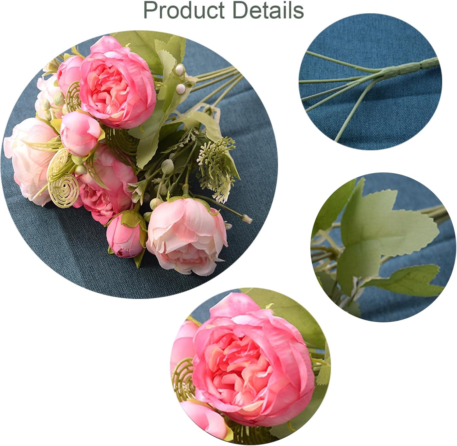 | Additional Features | GREAT FOR CENTERPIECES-Beautiful flowers that will complement any decor. Using it in spring flower displays, it can add the right amount of color & softness. Perfect for table centerpieces, wedding bridal bouquets, flower arrangement, DIY wreaths, home, kitchen, party, garden, graveside, restaurant decoration and other occasions decoration. Absolutely gorgeous and very real looking., LASTING AND EASY TO CARE: fake peonies do not requires water or sunlight, no dead leaves. Easy to clean and remove the dust. Faux peonies bouquet is a great alternative for those of us who have no time to take care of fake flowers. You don't need spending a lot of time on flowers. Artificial bouquets are not seasonal, you can enjoy these all year round., PEONY ARTIFICIAL FLOWERS: There are 2 bunches in package. The peony flower heads approx 3.14'' in diameter.Each bunch has 5 branches, 5 big peony flowers, 3 small buds, grass and leaves. The length of flower bouquet is approx 30CM., SAFELY MATERIAL: The fake flowers are made of high-quality silk cloth, safe and harmless. The style crafted to mimic the real look and feel of fresh flowers and luxurious to the touch! Natural fresh color. The branches are made of plastic material, and they contain flexible iron wires, which easily split or shape bouquets into new arrangement., WARM TIPS:The squeezing during the shipment or delivery may not be avoided, please arrange the flowers and leaves after received them. any question welcome to contact with us firstly, we promise a 100% Refund within 30 days and message reply service. |