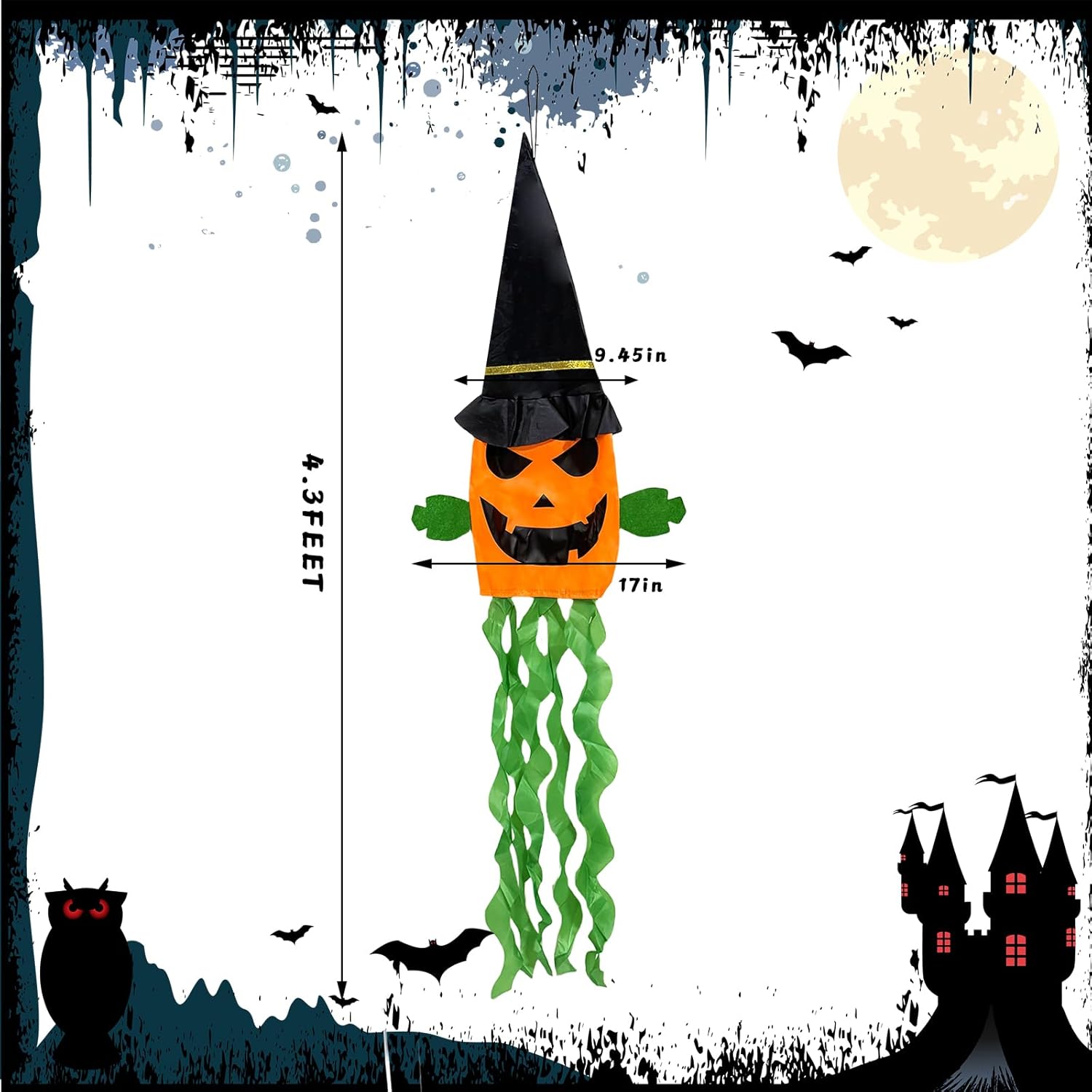 Transform your home into a spooktacular haunted paradise this Halloween with the JXITON 2 Pack Halloween Jack-O-Lantern Windsock Flags! You will get two vibrant Jack-O-Lantern windsock flags, each measuring an impressive 51.2 inches in height and 17 inches in width, along with two light strings to enhance your festive décor. Featuring both cute and eerie expressions, these decorations are perfect for creating a chilling ambiance that is sure to delight trick-or-treaters and party guests alike. Crafted from high-quality polyester fabric, our Halloween ghost decorations are lightweight, durable, and reusable, ensuring you can enjoy their charm year after year. The windsocks are designed for easy use, coming with a convenient hanging string to maintain their shape and prevent deformation. Plus, each Jack-O-Lantern features a cleverly designed pocket inside its hat that securely holds the switch for the light string, allowing for easy access at night to illuminate your festivities. Ideal for various indoor and outdoor settings, these Halloween hanging Jack-O-Lantern windsocks are perfect for decorating your front yard, garden, trees, flagpole, lamp post, front porch column, windows, and rooftops. Make your Halloween party a standout event with these eye-catching decorations that will enchant all who pass by. Get ready to create unforgettable memories with the JXITON Halloween Jack-O-Lantern Windsock Flags!