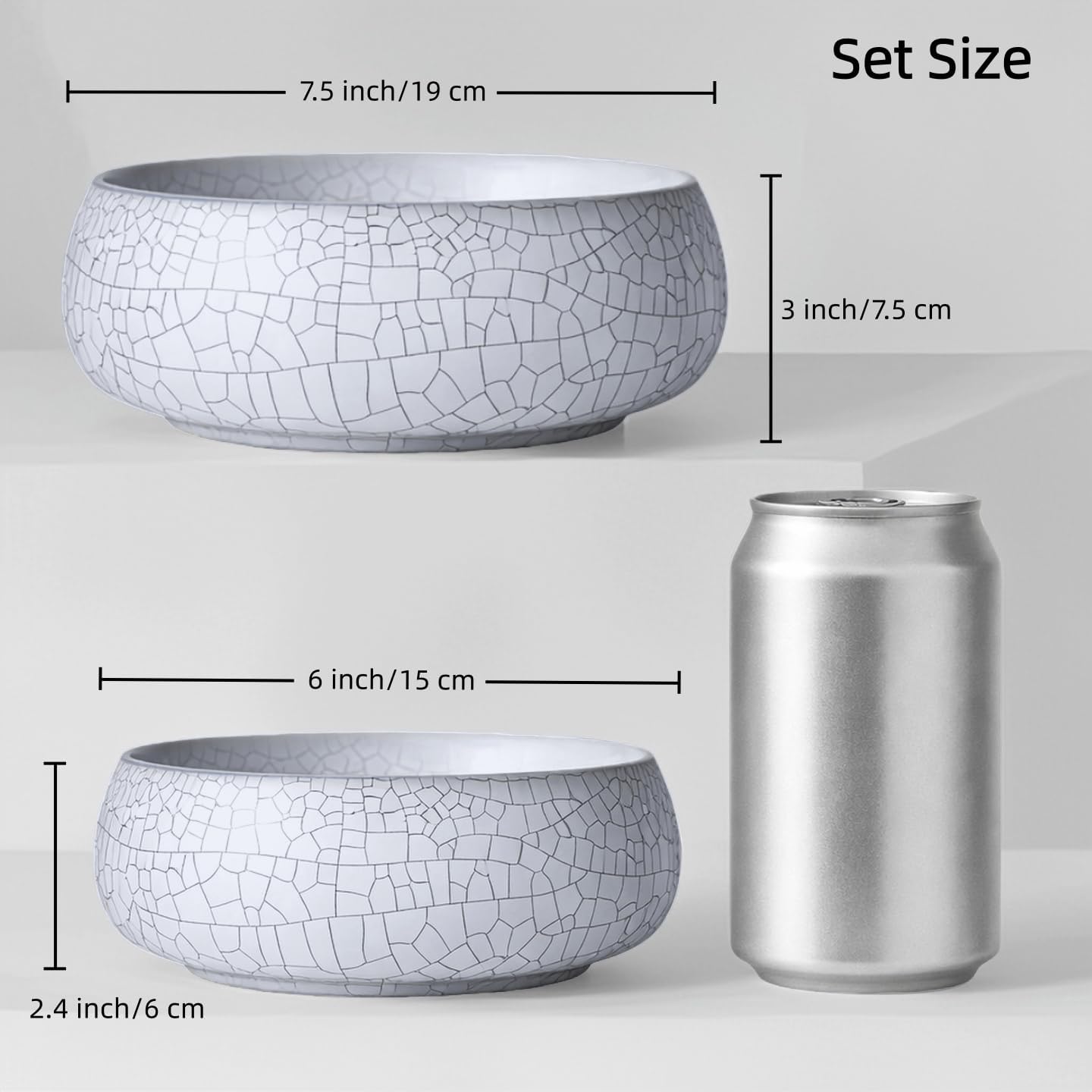 Elevate your space with our 2 Pack 7.5'' & 6.5'' Lotus Bowl Planter – sleek pale crackle celadon ceramic that blends hydroponic function with oriental charm. Dual sizes : 7.5'' large bowl for water lilies/lotus; 6'' small bowl for lotus seeds/succulents/bonsai. Sturdy craftsmanship : Thick ceramic with delicate crackle glaze – anti-tip, easy to clean, and long-lasting. Hassle-free hydroponics: Drainage-free, leak-proof design locks moisture (no water stains) – perfect for lotus, water lilies, or lucky bamboo. Multi-purpose: Beyond planting, use as a snack bowl or ikebana vase. Decor-ready: Soft celadon hue fits any space – ideal for desks/shelves, or gifting to plant/decor lovers. Functional, stylish, and versatile – turn small indoor spots into calm, thriving corners.