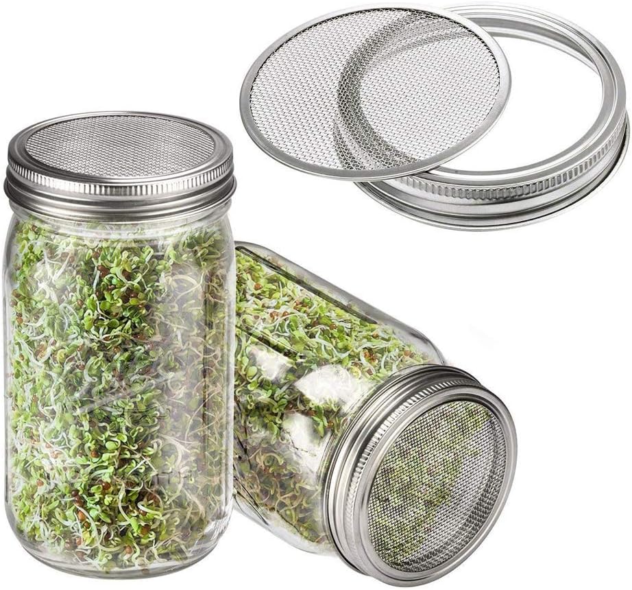 Products Include: 2*sprouting lids 2*Stainless stand Operation method: 1.Put the right amount of seeds and water into the bottle and soak for 8-12 hours 2.Pour the water clean, cover with screen lid.