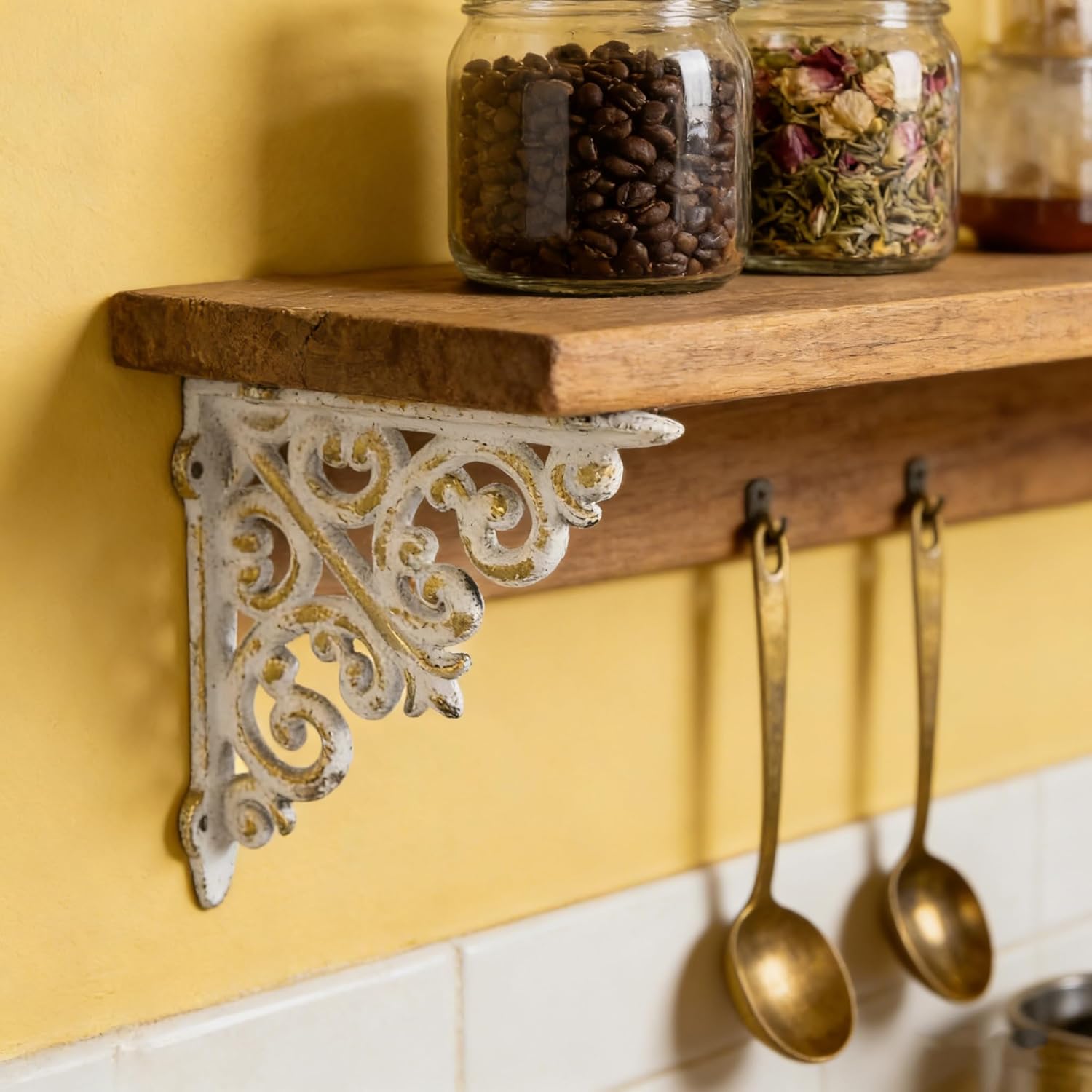 | Set Name | 2-Piece Vintage White & Gold Cast Iron Shelf Brackets Set |