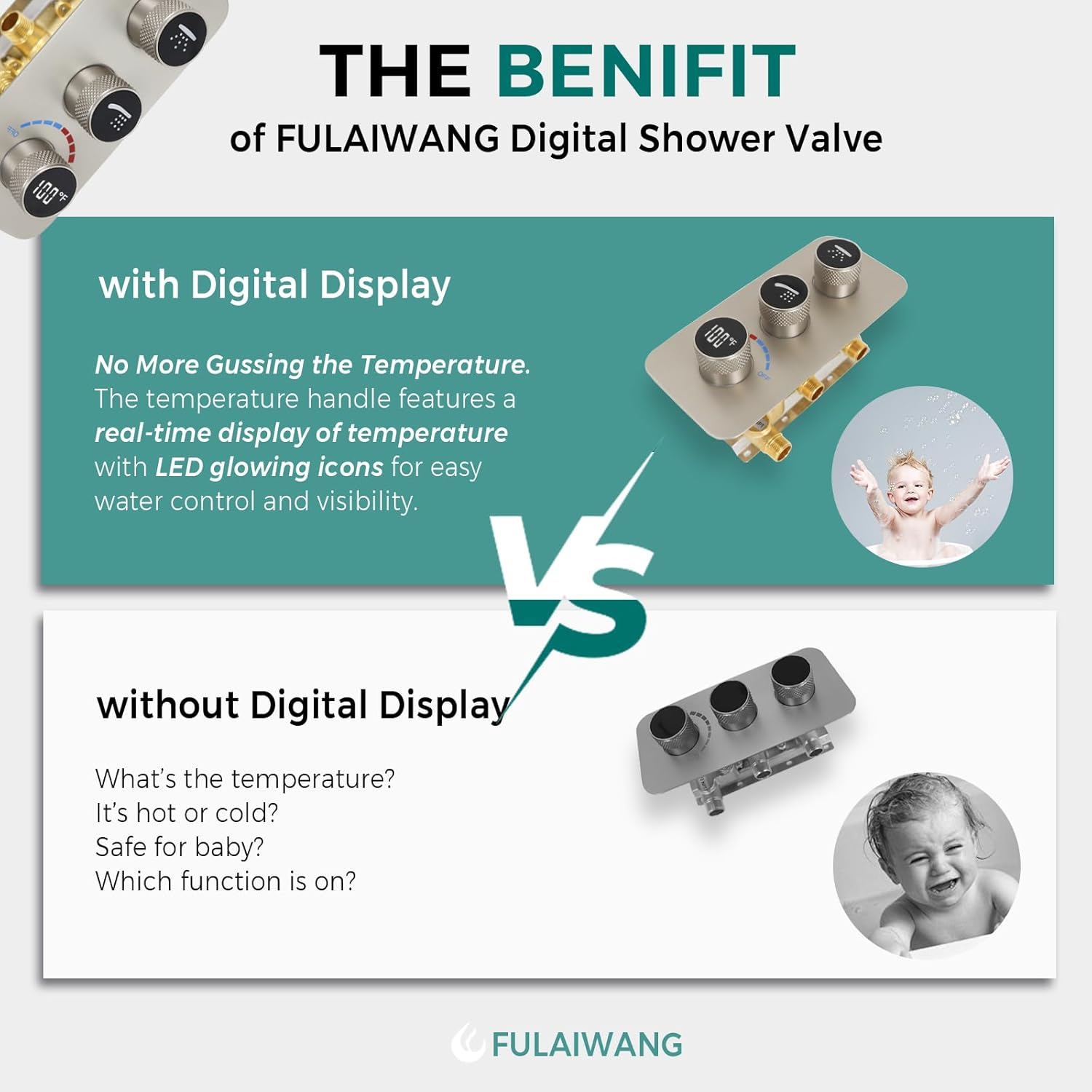 | Included Components | 2 way shower diverter valve with trim kit, led Digital Temperature Display |