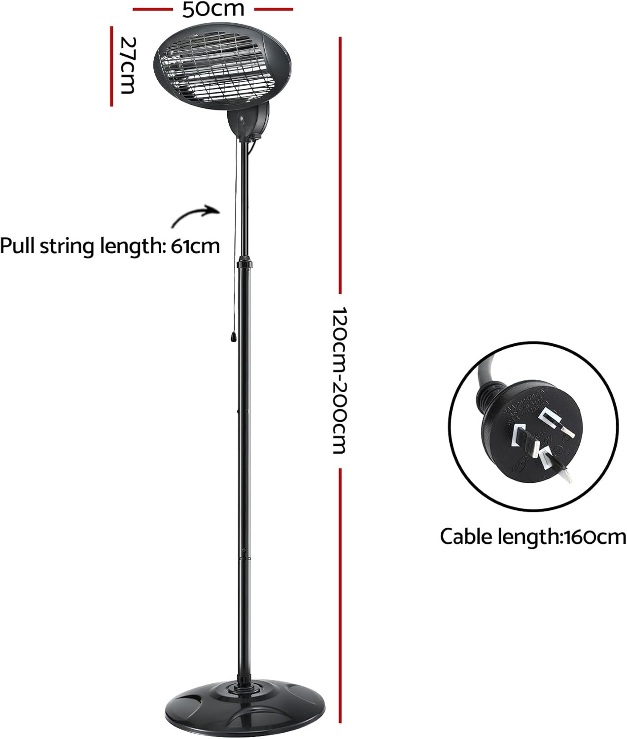 Devanti 2000W Electric Portable Patio Strip Heater is designed to provide sun-like warmth when you need it most. With its efficient 2000W halogen heating technology, the Heater is at once a heater and a light. More importantly, it utilizes infra red to heat the environment. As such, the radiant energy only turns to heat when it comes into contact with people, with up to 95% energy conversion. Simply put, the Heater is highly economical, totally eco-friendly and not least, equipped with a tip over switch to automatically cut off power supply to the Heater in the event of a fall. A pull cord also makes for easy turning on and off the Heater. And with its IP34 rating for all-weather use, the Heater is absolutely great for use at cafes and restaurants with al fresco dining options or when you decide to dine under the stars at home.