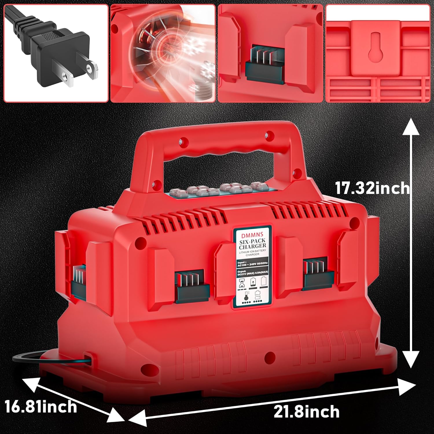 With 6 independent charging ports, this rapid charger enables you to charge up to six compatible with M18-format batteries simultaneously—dramatically reducing downtime and enhancing workflow efficiency for large projects. Each port features a dedicated LED indicator, providing clear, real-time status updates so you can monitor progress and maintain productivity across all your tools and tasks.
