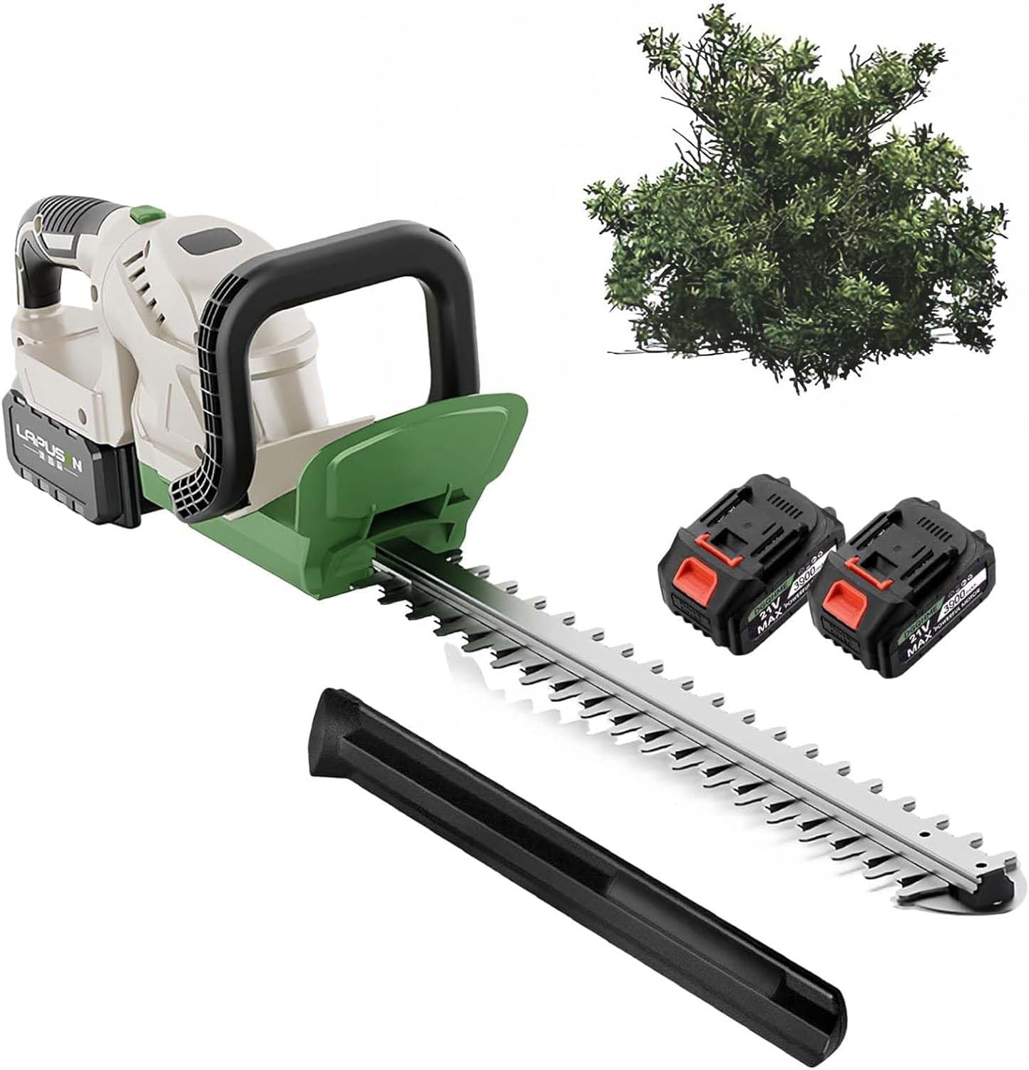 Introducing our innovative Grass Trimmer, expertly designed for efficiency and ease of use, making yard maintenance a breeze. Featuring a sleek white and light green color scheme, this trimmer is not just visually appealing but also built for durability with its high-quality nylon, polypropylene (PP), and ABS materials. Engineered to tackle tough tasks, it offers reliability you can count on. The cutting edge is crafted from premium stainless steel and aluminum strips, ensuring precision and long-lasting performance. With a double-edged reciprocating cutter head, this trimmer delivers exceptional cutting capabilities, making it ideal for maintaining your garden or lawn with ease. Powered by a robust Brushed DC motor model 560, the Grass Trimmer boasts an impressive output of 200W at 21V, allowing you to efficiently trim grass and small branches. It operates with a no-load current of 2-3A and a load current of 3-10A, achieving a remarkable motor speed of 20,000 r/min. The adjustable blade speed, ranging from 0-3000 r/min, allows for customized cutting based on your needs. With a battery capacity of 3900mAh, this trimmer ensures ample runtime for all your trimming tasks, easily cutting through branches with a diameter of up to 15mm. The blade length of 510mm provides a wide cutting area, making it perfect for tackling larger jobs. Measuring 90x15.5x17cm (35.43x6.1x6.69in) and weighing just 2kg (4.4lb) without the battery, this cordless hedge trimmer is lightweight and portable, allowing you to maneuver effortlessly around your garden. Each package includes one Cordless Hedge Trimmer, a charger (1 or 2 included), a protective cover, and an instruction manual for your convenience. Whether you’re a gardening enthusiast or simply need to maintain your outdoor space, our Grass Trimmer is the perfect tool to help you achieve a beautiful, well-kept garden with minimal effort. Experience the transformation of your yard with our efficient and powerful Grass Trimmer today!
