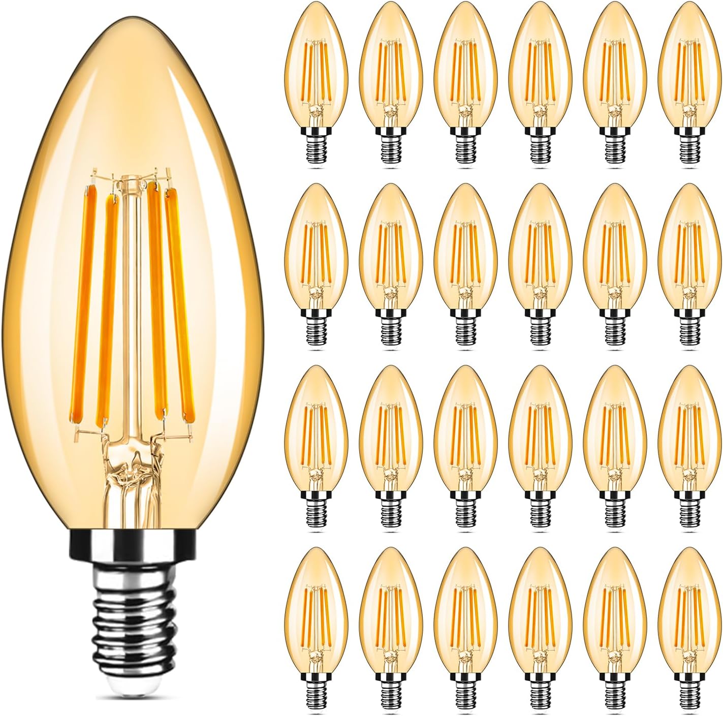 • 🔆CUT DOWN HUGE ELECTRICITY BILLS - Replace 40W incandescent chandelier light bulbs only by 4W led candle bulbs, super longer 25000+hours lifespan, high lighting efficacy and little heat dissipation, by choosing such good vintage led candle lamps, you will save lots of money by years.