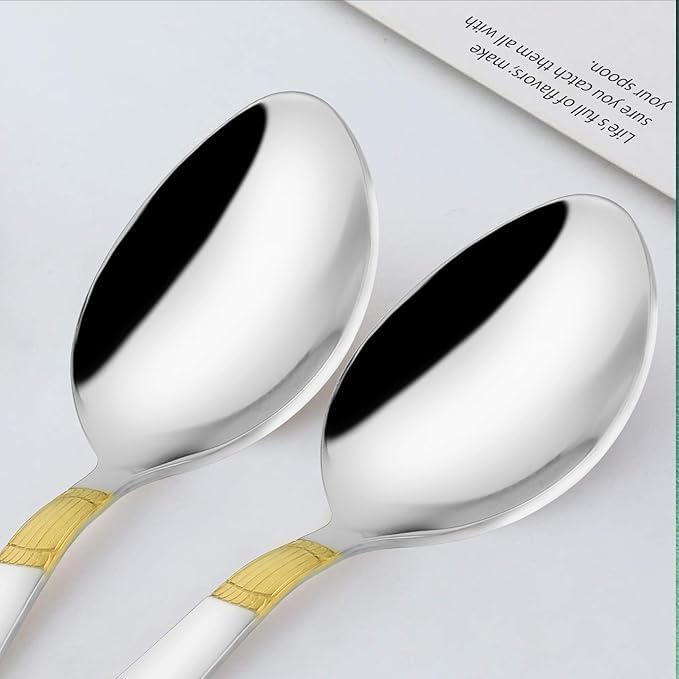 This Parage 24-piece stainless steel spoon set brings practicality and elegance to your dining table. Each spoon measures 16.5 centimetres in length, making them perfectly sized for everyday use across soups, desserts, coffee, tea, and more. Crafted from high-quality stainless steel, these spoons are built for durability and resist corrosion, ensuring they maintain their mirror-polished finish through years of use. The set includes 24 dinner spoons, providing ample quantity for family meals, gatherings, or entertaining guests. The simple, timeless design complements any existing flatware collection and suits both casual and formal dining occasions. Each spoon features an ergonomically designed handle for comfortable grip and rounded edges for safe use. The sturdy construction means these spoons won't easily bend, whilst remaining dishwasher-safe for convenient cleaning. Weighing 800 grams total and manufactured in India, this BPA-free spoon set is an essential addition to any kitchen, restaurant, or bar. The generous set size ensures you'll always have clean spoons available, making them ideal for busy households and frequent entertainers alike.
