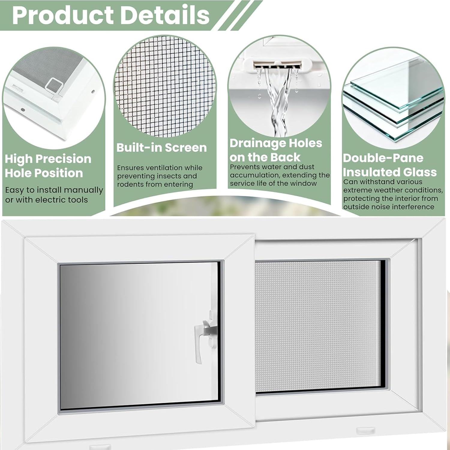 textTransform your space with our high-performance Aluminum Basement Sliding Window. Engineered for durability, energy efficiency, and easy installation, this window is the perfect solution for both residential and outdoor structures.Premium Construction**- Frame: Aluminum Sliding Windows , resistant to rust, corrosion, and weathering.- Glass: 4mm (0.15in) double-pane insulated tempered glass for superior insulation and safety.- Screen: Removable fiberglass mesh for ventilation and easy maintenance.Smart Design Features**- Smooth horizontal sliding operation with secure crescent lock.- Weather-stripping seals keep out drafts, dust, and moisture.- Pre-drilled holes and included screws for hassle-free installation.Versatile Use Cases**Whether you're renovating a basement, building a chicken coop, or upgrading a shed, this window delivers reliable performance. Suitable for:- Basements & Bathrooms- Sheds, Garages & Barns- Chicken Coops & Playhouses- RVs & Mobile Homes- Greenhouses & Storage RoomsWhy Choose Our Window?**Energy Efficient – Reduces heating/cooling costs.Safe & Secure – Tempered glass + locking mechanism.Low Maintenance – Aluminum frame + removable screen. DIY Friendly – No professional tools required.