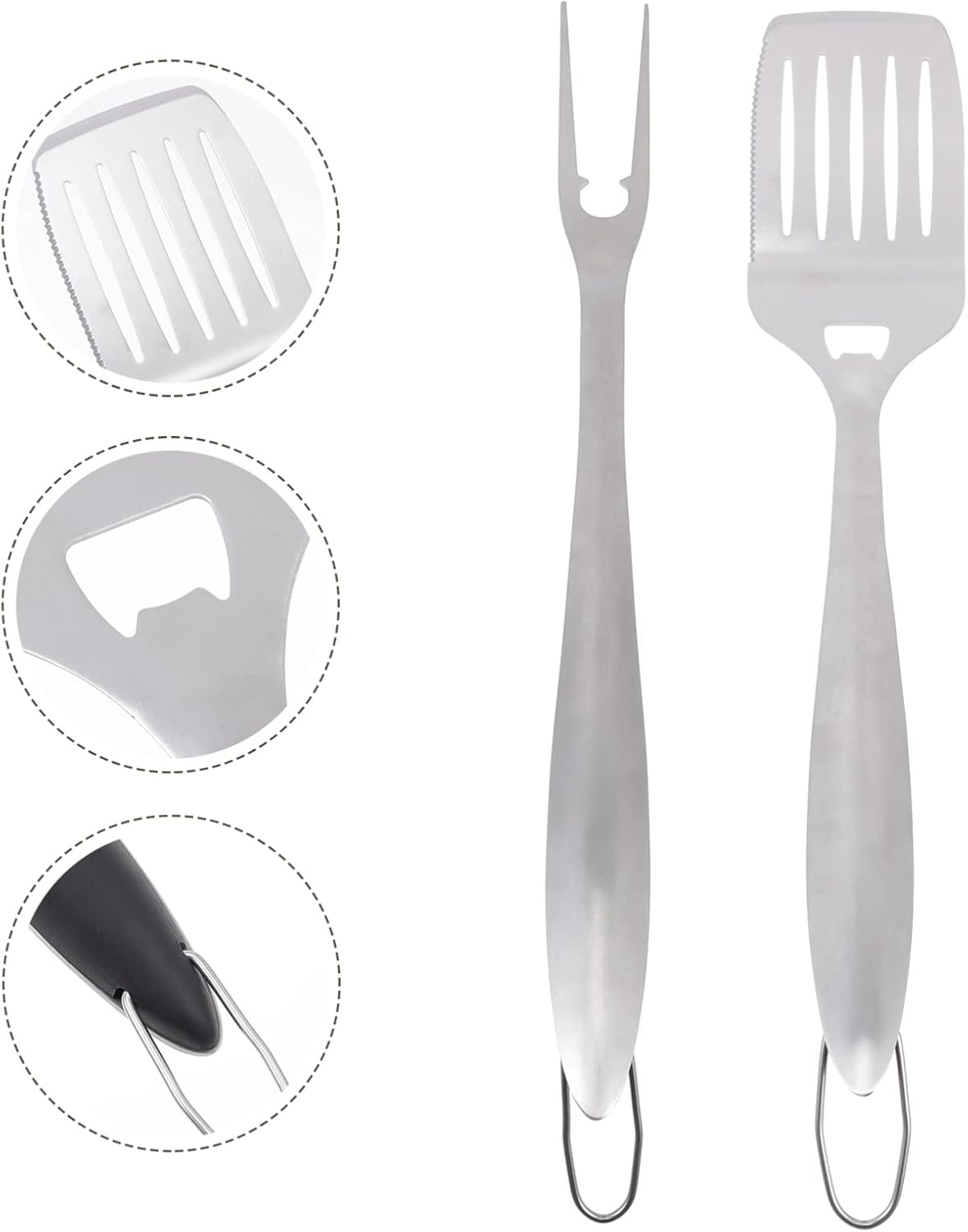 Description This is a set of barbecue tools. Made from , they are and practical for long time use. They can not be used as the kitchen tools but also be the great BBQ tools for outside picnic. They are compact and easy to carry, also can be used at home every day. Features- Color: Silver- Material: Stainless steel and plastic- Size: About 45. 00X9. 00X3. 00cm- Made of stainless steel and wearable plastic,, stylish and - resistant.- This set of kitchen tools can meet your different daily life needs because they feature high durability.- They are you and your friends on a picnic or at home to use, which is very practical for you.- These products are designed with ergonomic design, making them easy and comfortable to hold.- Environmental protection and safety feel comfortable and labor- saving more relaxed. Package Including 1 x barbecue fork 1 x barbecue spatula