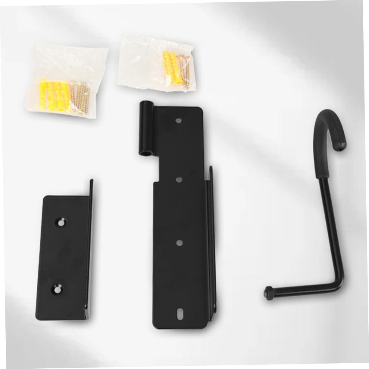 Package List 2 x wall mount bike hangers 2 x gaskets 12 x sets of expansion screws Characteristics -Material:Iron,plastic bike hanger -Size:26.00X18.00X10.00cm/10.22X7.07X3.93in garage bicycle rack -Color:Black garage storage hooks -This wall-mounted bike rack is designed to save space and keep your bike secure and stable bicycle hanger. -This bike rack is suitable for a variety of bike , can use it to store your road bike, mountain bike, or any other type of bike you own garage hooks. -Installation is , can hang your bike on the wall simply metal bike hooks. -The rack also protects your bike frame from scratches, can be sure that your bike will stay in great condition while it's hanging on the wall bike hooks. -The rack is firmly attached to the wall and can support the weight of your bike wall bicycle hooks.Goods Descriptionindoor bike storage It is easy to install with the included expansion screws, and no additional tools are required.cycling bike hook It features a secure ensure stability and prevent loosening.garage bicycle rack The Bike Wall Mount Rack is designed to save space by hanging bicycles on the wall, utilizing vertical space and not occupying floor space.wall mount bike hook The rack is suitable for various of bicycles, including mountain bikes, road bikes, and folding bikes