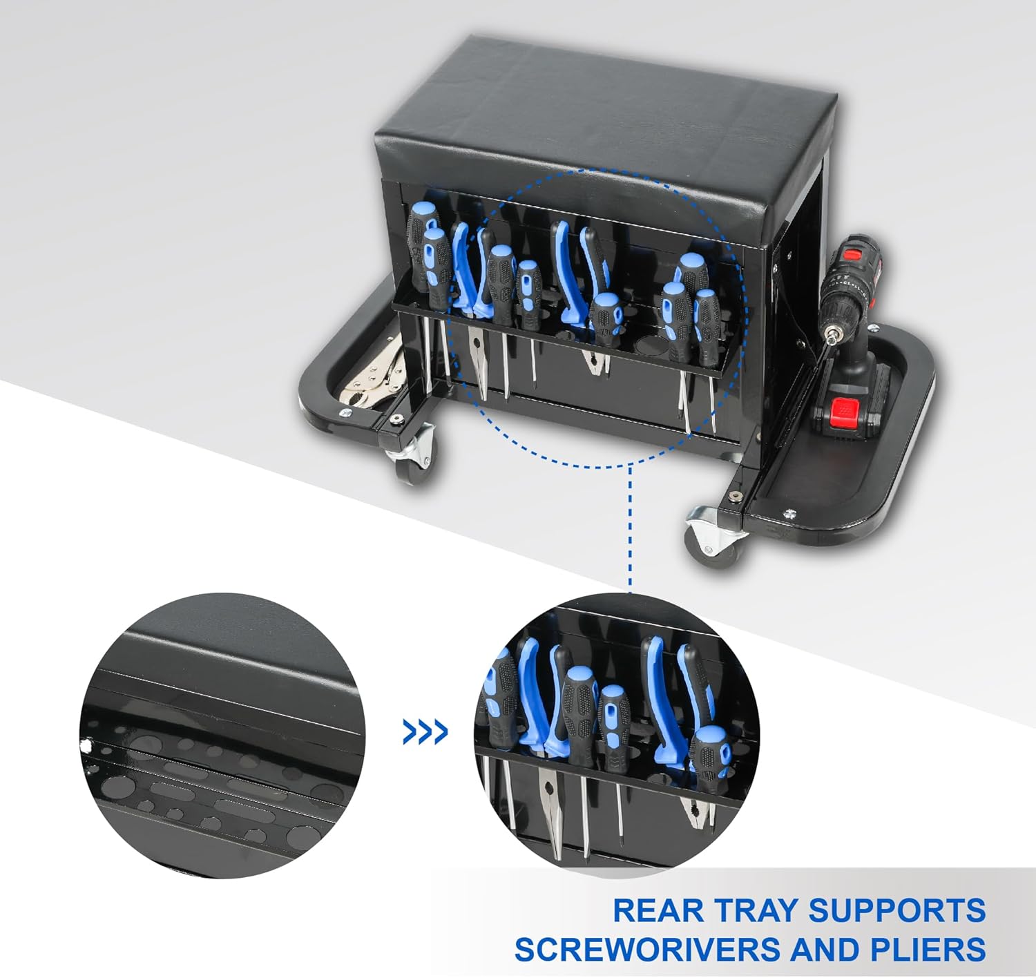 3-Drawer Tool Chest Rolling Mechanic Seat with Tool Trays,350lbs Max Weight Capacity,Black