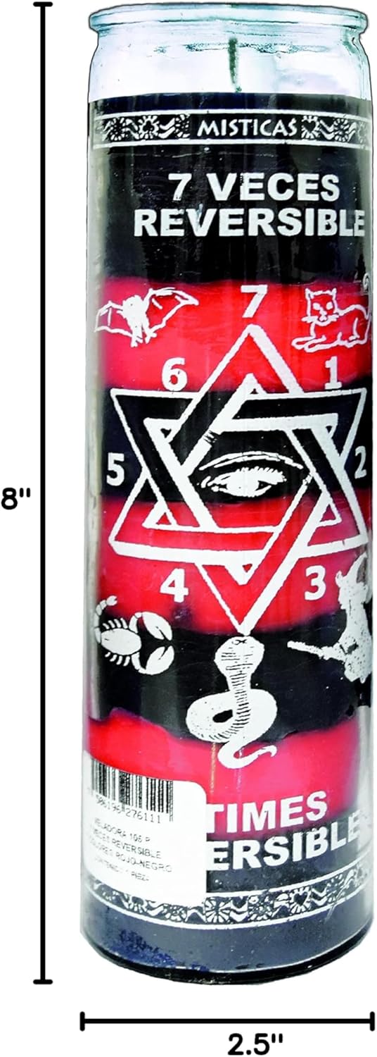 This listing is for a 7 times Reversed / 7 Veces Reversible Novena Candle Only. Reversal Candles are traditionally used and fixed to send all Evil eye, Jinx, Witchcraft, Spiritual Attacks back on its sender. The difference between this candle and many other Candles that break these conditions is that this candle is used to send those spiritual conditions back to their sender even if you don't know exactly where this malicious energy is coming from. JAR DIMENSIONS: 8" TALL X 2-1/2" DIAMETER CLEAN BURNING COTTON WICK. (MECHO DE ALGODÓN QUEMADO LIMPIO) BURN TIME 120 HOURS-TIEMPO DE COMBUSTIÓN 120 HORAS FOR CURIO ONLY-PARA CURIO SOLAMENTE