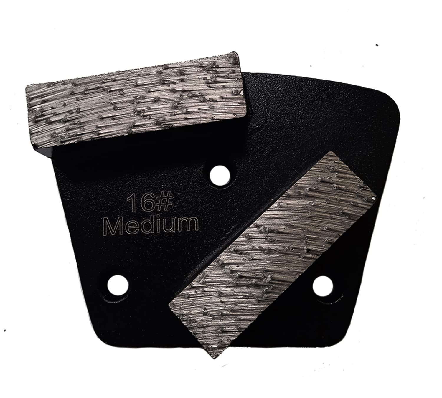 Grit 16# ,Medium bond.3*M6 mounting hole.Adapt high grade synthetic diamond and high-quality alloy powder.Diamond segment size:40*12*12mm, 3 Pcs in one set.Applicable to most concrete grinders with high grinding efficiency.Design for concrete floor grinding,removing adhesives, thin mil coatings and leveling uneven spots or joints.