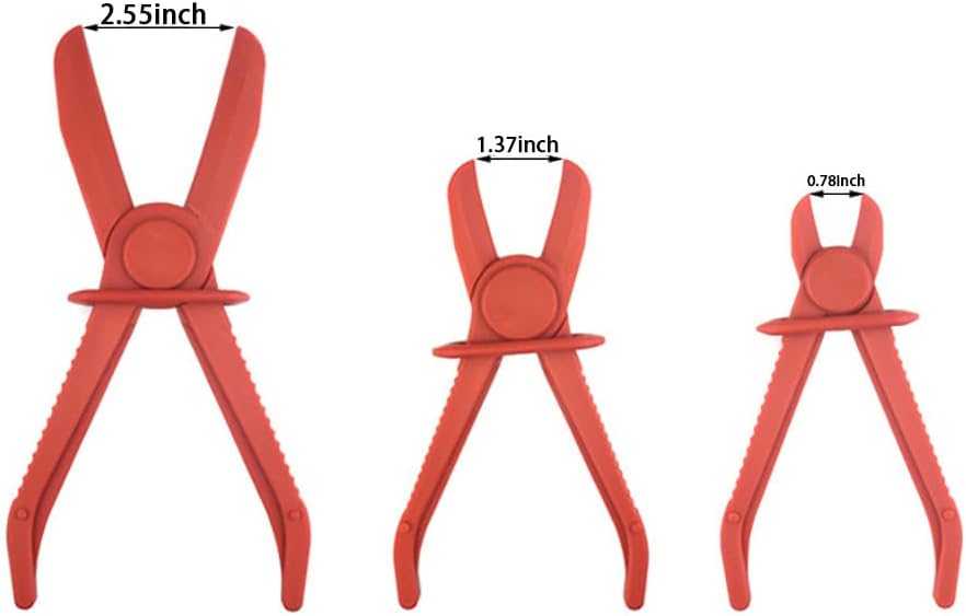 Product: plastic pliers auto tubing clamp toolMaterial: Plasticcolor: redQuantity: 3 piecesApplication: tubing cut-off pliersSpecifically designed for automotive applications, these pliers allow you to easily crimp flexible hoses, making repair or maintenance tasks on your vehicle easier. This comprehensive kit features three sizes of auto hose clamps: small, medium and large to meet a variety of fuel and radiator hose clamp requirements. The auto hose wrench is made of heat-resistant, non-conductive, and rust-resistant nylon material, ensuring they won't snap or puncture the lines they're used on. This high quality construction makes it ideal for managing fuel hose clamps, radiator hose clamps and gas hose clamps during vehicle maintenance. Each plier in the hose clamp set is designed for a specific line size: small pliers measure 6.1 x 1.6 x 0.6 inches and fit 1/8 inch to 5/16 inch tubing; medium pliers measure 7.2 x 1.9 x 0.8" to accommodate 1/2" to 3/4" hose; Large pliers measure 9.9 x 2.1 x 0.8" to fit 3/4" to 2.5" cord. Safety is paramount when using hose wrench and other automotive tools. Please observe the following guidelines to prevent serious injury: Wear ANSI approved safety goggles when in use; use pliers for service and maintenance only; remove them from the vehicle after use; keep your hands and pliers away from the radiator fan; Do not use pliers on a damaged hose; avoid using the brake hose if it has loose parts clamped on it.