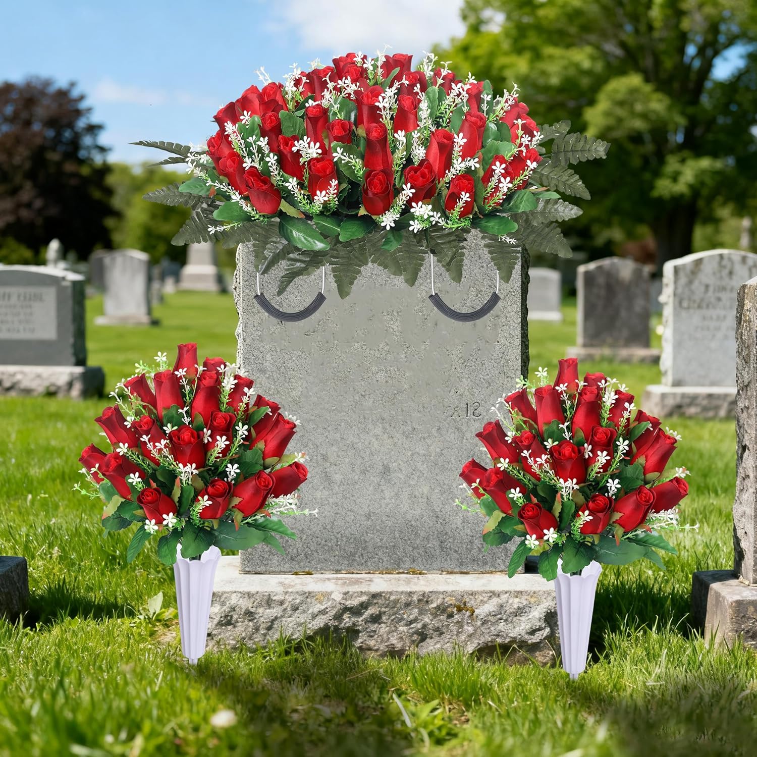 | Included Components | Grave flowers bouquet, artificial cemetery flowers saddle, vase |