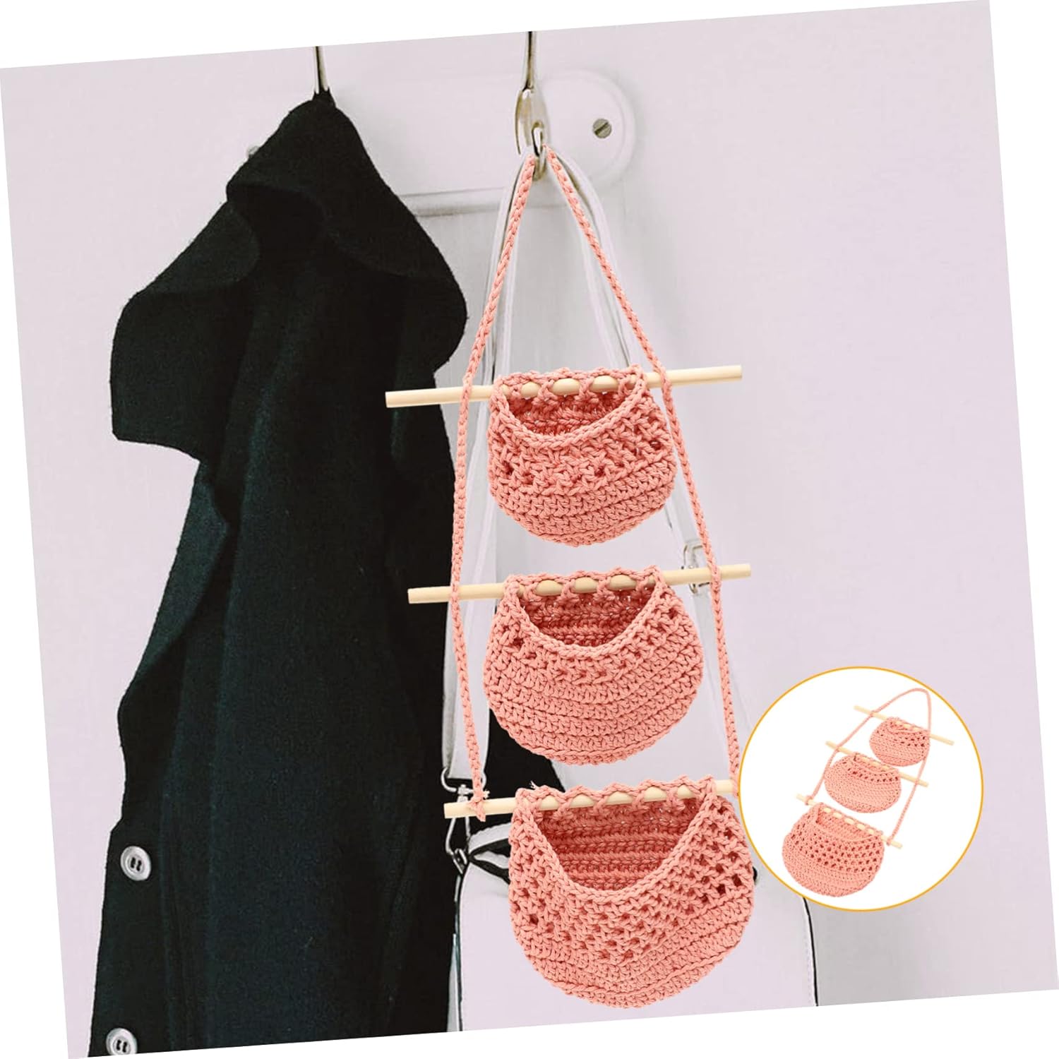 Package List 1 x Hanging Fruit Basket Characteristics -Color:Pink hanging for organizing -Size:85.00X28.00X1.30cm/33.41X11.00X0.51in fruit basket -Material:Cotton Rope, Wood hanging basket kitchen - This hanging basket can well store and display your on the wall, allow you to easily access to them woven fruit storage basket. - The hanging basket provides good air circulation for fruits, to allow them to keep in good condition for a long time household storage basket. - This Hanging Fruit Basket can help you to keep your kitchen clean and tidy. In addition, it can add a textured touch to your storage basket. - With good loading capacity, it will not easily crack, break or deform, fine workmanship its practicality and durability door-hung basket. - A nice housewarming , birthday or festival for your friends, families or colleague hand-made hanging basket.Goods Informationhand-made hanging basket Are you looking for a and decorative 3 tier wall Hanging Fruit Basket for storing fruits and vegetables? , ! Our Hanging Fruit Basket must meet your needs.small for organizing Made of , it is and to use, not easy to break,