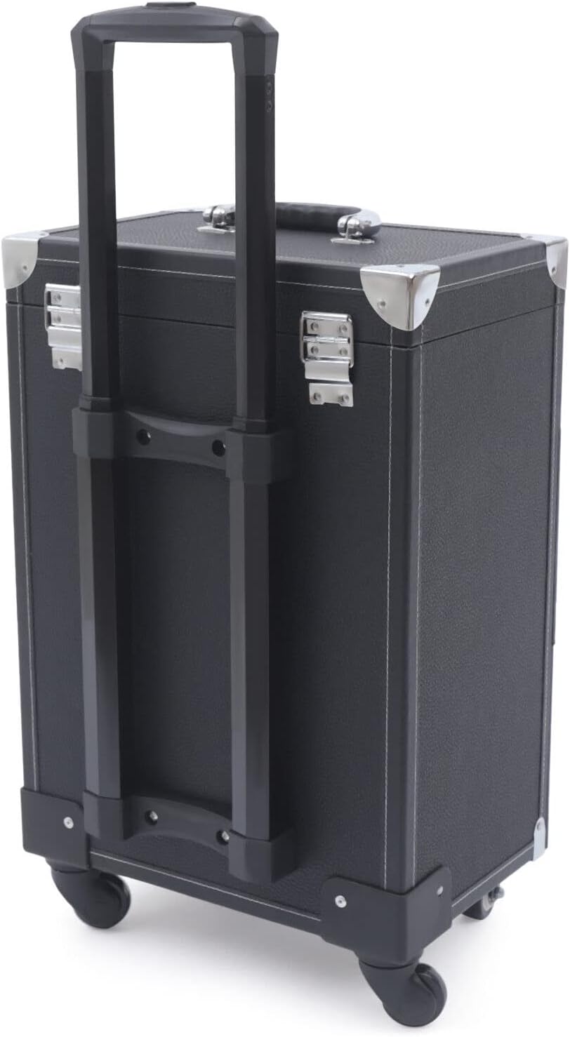 Description:Are you still looking for a case to store your large amount of cosmetics? This makeup train case is worth knowing about. It has three layers in total. The first layer has 45 small compartments for nail varnish or other small items. The second layer is suitable for larger items such as hairdryers, curling irons, nail art machines, etc. The third layer has two compartments for medium items. Its large capacity and separated compartments allow you to neatly store your make-up and make it easy to reach and find. It will be your ideal choice.Specification:Material: PU+PVC+Zinc AlloyColor: Purple/BlackShape: CuboidOverall Makeup Train Case Size: 36*23*49cm/14.2*9*19.3inchLid Size: 36*23*5cm/14.2*9*2inchMaximum Length of Telescopic Bar: 45cm/17.8inchUniversal Wheel Height: 7cm/2.8inchFirst Layer:External Height: 9cm/3.5inchInternal Dimensions: 33.5*22*8cm/13.2*8.7*3Inside Each Compartment Size: 3.5*3.5*4.5cm/1.4*1.4*1.8Second Layer:External Height: 17cm/6.7inchInternal Dimensions: 30*19.5*13.5cm/11.8*7.7*5.3inchThird Layer:External Height: 17cm/6.7inchInternal Each Compartment Size: 14.5*19*13.5cm/5.7*7.5*5.3inchPacking Size: 63*32*41cm/24.8*12.59*16.14inchGross Weight: 10kg/22lbsApplication: It is suitable for beauty bloggers, make-up artists, hairstylists, manicurists or those who own a lot of make-up. It is also an ideal gift for family and friends.Package Included:1* Purple/Black Makeup Train Case2* KeysNotes:Please allow the slight color difference caused by the shooting light and 1-3 cm error due to manual measurement, and make sure you do not mind before ordering.