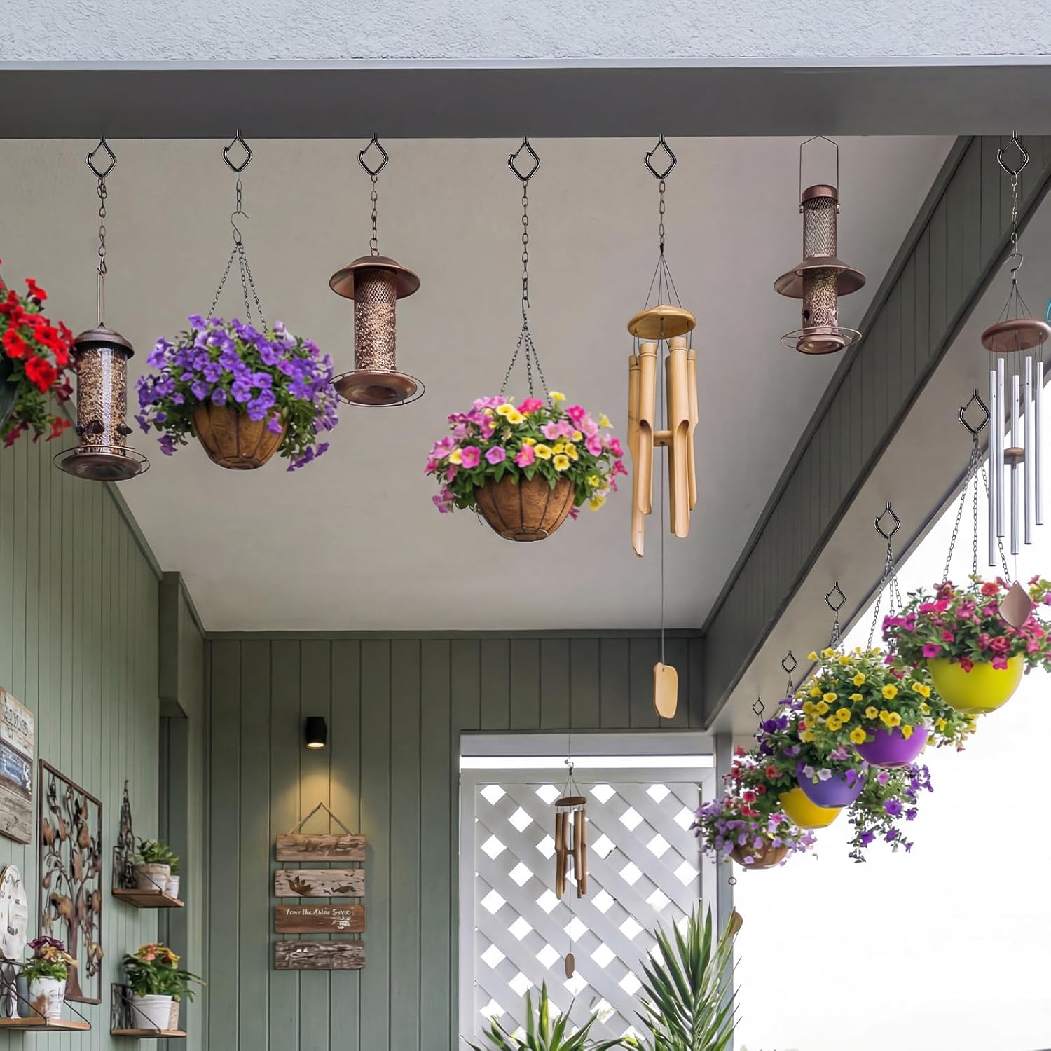 Features: Versatile for many occasions: These screw in hooks are ideal for seasonal decorations and holiday displays, and can be used to hang Christmas lights, Halloween decorations, birthday banners, July of 4th decorations, lanterns, and festive ornaments. They are ideal for decorating patios, porches, gardens, fences, and indoor spaces, helping you create a festive atmosphere for holidays, celebrations, and special occasions throughout the year Practical hooks: Besides their decorative function, these heavy duty hooks are also very practical for everyday storage. You can use them to hang plants, mugs, tools, wind chimes, bird feeders, or small decorative items. They are suitable for kitchens, garages, gardens, balconies, and workshops, helping to keep spaces tidy and organized, with items easily accessible Specifications: Material: metal Color: black Size: 2.36 x 1.12 inches(L x W) Package includes: 300 x Eye screw hooks for hanging 300 x Anchors 1 x Drive tool Notes: Manual measurement, please allow slight errors on size. The color may exist a slight difference due to different screen displays