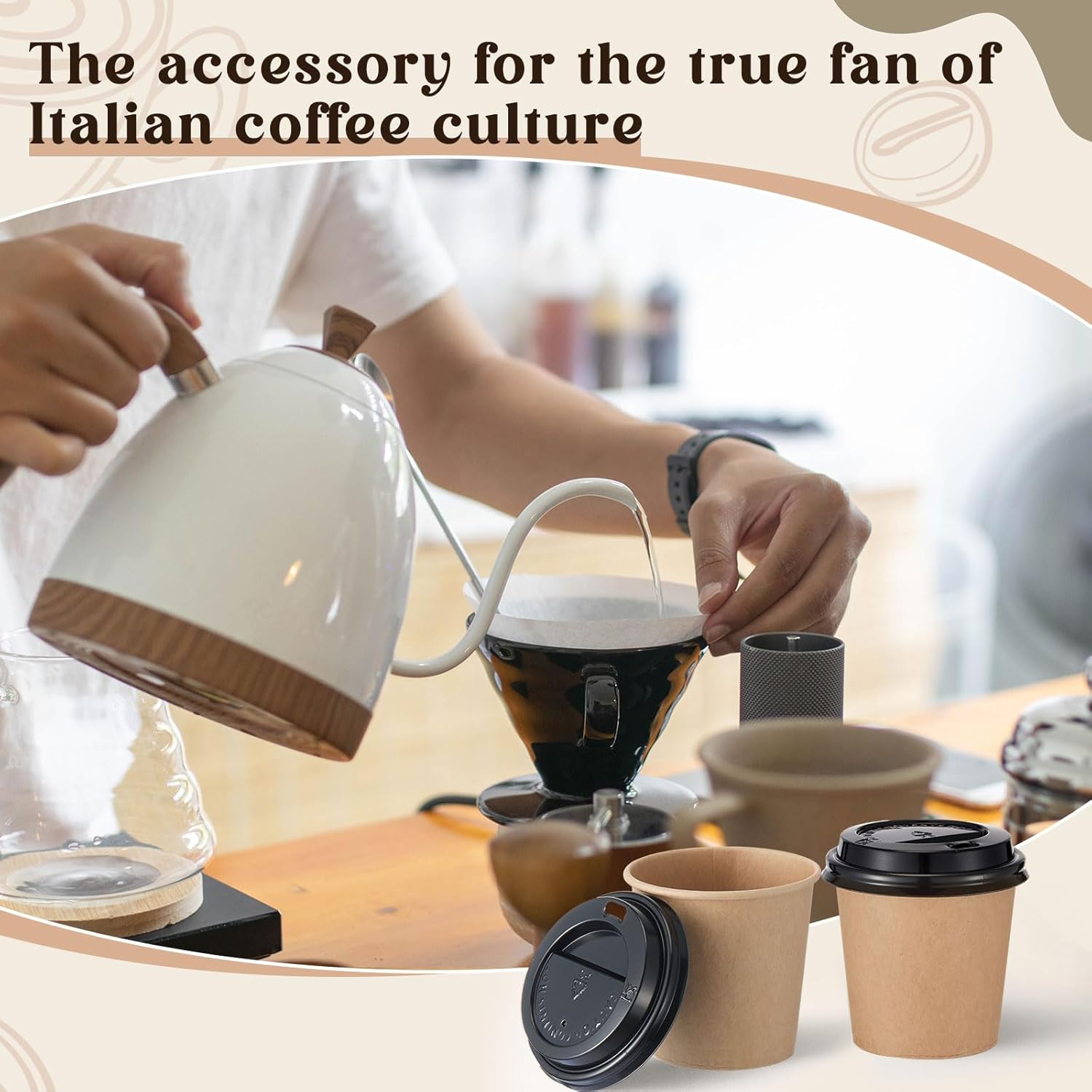 Features: Safe and suitable lid: Each 4 oz espresso cup comes with a comfortable lid to prevent spillage and keep your drink warm, and a straw can be inserted, allowing for convenient portability without sacrificing quality Convenient and practical: These mini coffee cups do not need to be washed. The post use processing is simple and stress-free, saving precious time and energy for enterprises and individuals, and enhancing productivity and efficiency in various environments. Specifications: Material: kraft paper, plastic Color: kraft paper color, black Size: 2.4 x 2.32 inches/ 61 x 59 mm Package includes: 300 x Espresso cups with lids 300 x Lids Notes: Manual measurement, please allow slight errors on size. The color may exist a slight difference due to different screen displays